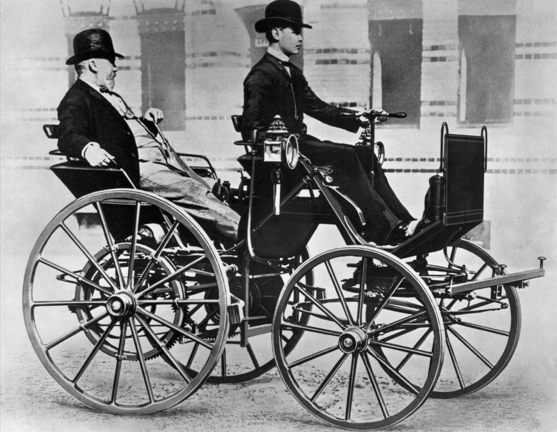 Μετά το μοτοποδήλατο, η πρόοδος ήταν ραγδαία: η αυτοκινούμενη άμαξα Daimler, το πρώτο τετράτροχο αυτοκίνητο στην ιστορία, έκανε το ντεμπούτο της στα μέσα του 1886. Λίγο νωρίτερα, τον Ιανουάριο, ο Carl Benz είχε κατοχυρώσει με δίπλωμα ευρεσιτεχνίας το τρίτροχο αυτοκίνητό του. Οι δύο πρωτοπόροι του αυτοκινήτου, Benz και Daimler, εργάζονταν ανεξάρτητα ο ένας από τον άλλον και δεν συναντήθηκαν ποτέ προσωπικά.