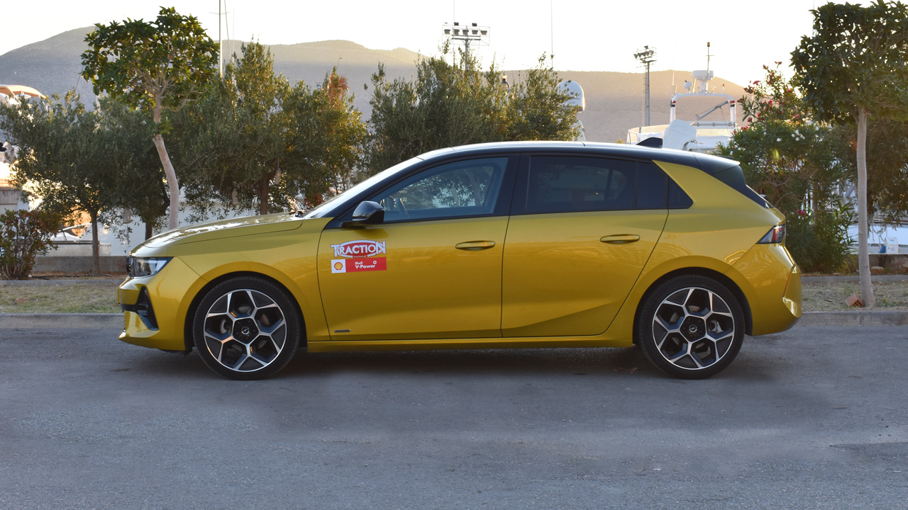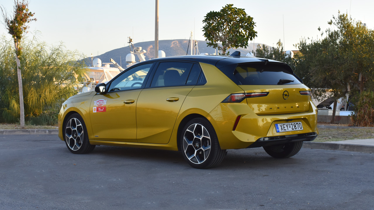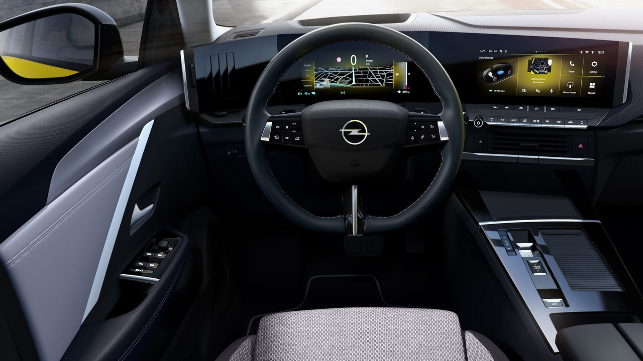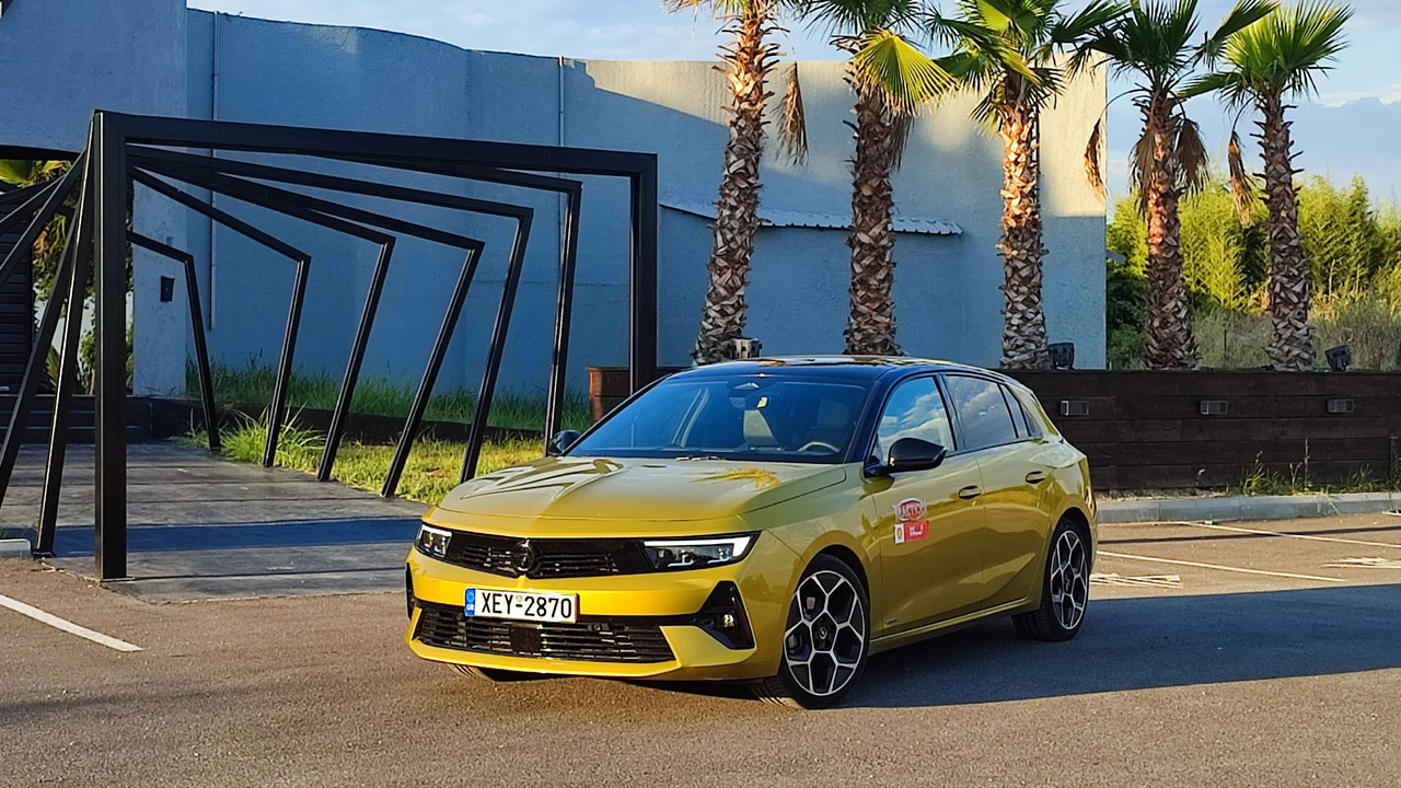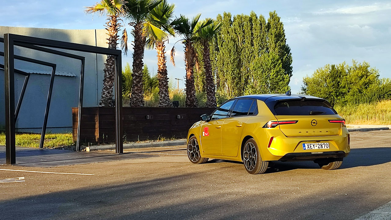 Ας αναγερθώ όμως λίγο παραπάνω στον τετράτροχο πρωταγωνιστή μας, το Opel Astra και στο εσωτερικό του στο οποίο περάσαμε τόσες ώρες. Πρόκειται για ένα περιβάλλον ποιοτικό και σύγχρονο. Ο οδηγός περιβάλλεται από μαλακά πλαστικά, τουλάχιστον στο άνω τμήμα του ταμπλό, ενώ η συναρμολόγηση δείχνει ιδιαίτερα προσεγμένη. Ιδιαίτερο ενδιαφέρον έχει η συνεχής εναλλαγή σχημάτων και υλικών. Όπως μπορείτε να δείτε και στις σχετικές γραμμές, υπάρχουν αρκετές έντονες ακμές στο ταμπλό, αλλά και επιφάνειες με αλουμινένια υφή, αλλά και “piano black”. Σχετικά με τις οθόνες, στην πλούσια έκδοση της δοκιμής έχουμε μία οθόνη πίσω από το τιμόνι σε ρόλο πίνακα οργάνων που παρέχει στον οδηγό όλες τις απαραίτητες ενδείξεις και έχει μέγεθος 10 ιντσών. Ίδιου μεγέθους είναι και η κεντρική οθόνη αφής μέσα από την οποία προσφέρονται συστήματα συνδεσιμότητας (Android Auto / Apple Carplay), κάμερα οπισθοπορείας, σύστημα πλοήγησης και άλλα. Μάλιστα, οι δύο οθόνες είναι ενσωματωμένες, με την αφής να στρέφεται ελαφρά προς την πλευρά του οδηγού και τις δύο μαζί να αποτελούν το λεγόμενο ” Pure Panel” όπως το ονομάζει η γερμανική εταιρεία.
