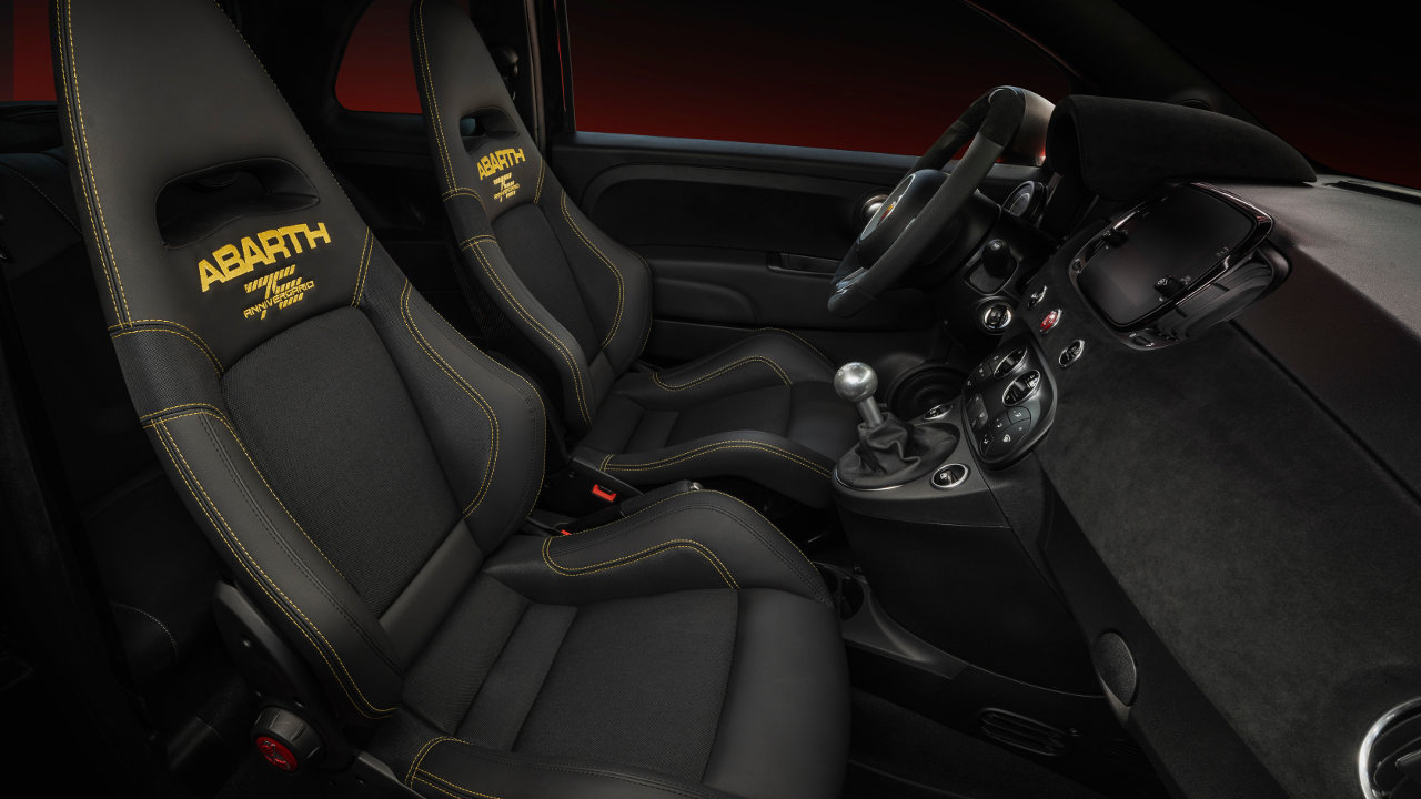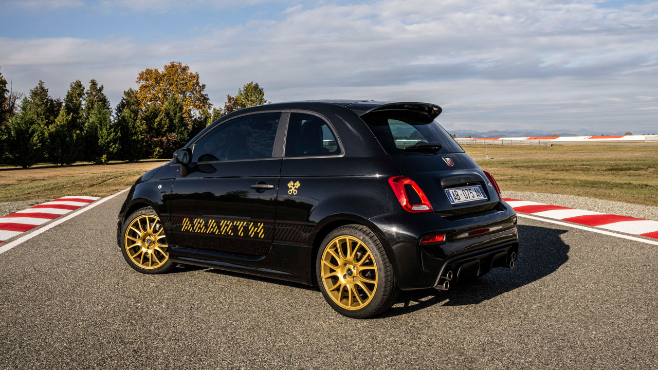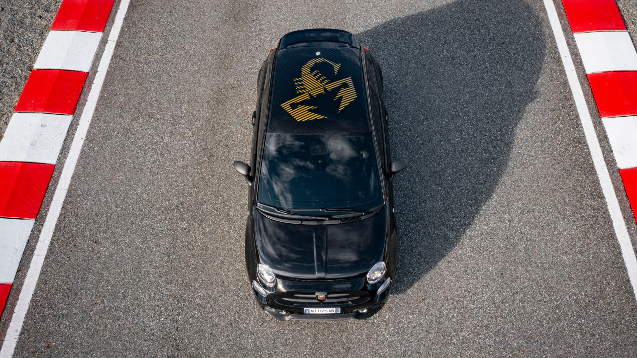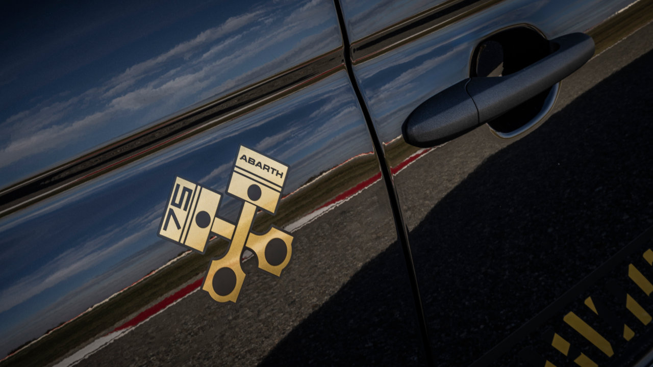 Από τις υπόλοιπες εκδόσεις η νέα επετειακή ξεχωρίζει και εξωτερικά με τον τεράστιο Σκορπιό στην οροφή να τοποθετείται εκεί για πρώτη φορά. Η Abarth επέλεξε το χρυσό χρώμα για τα γραφικά που στολίζουν το μικρό αμάξωμα, ενώ χρυσές είναι βαμμένες και οι ζάντες των 17 ιντσών.