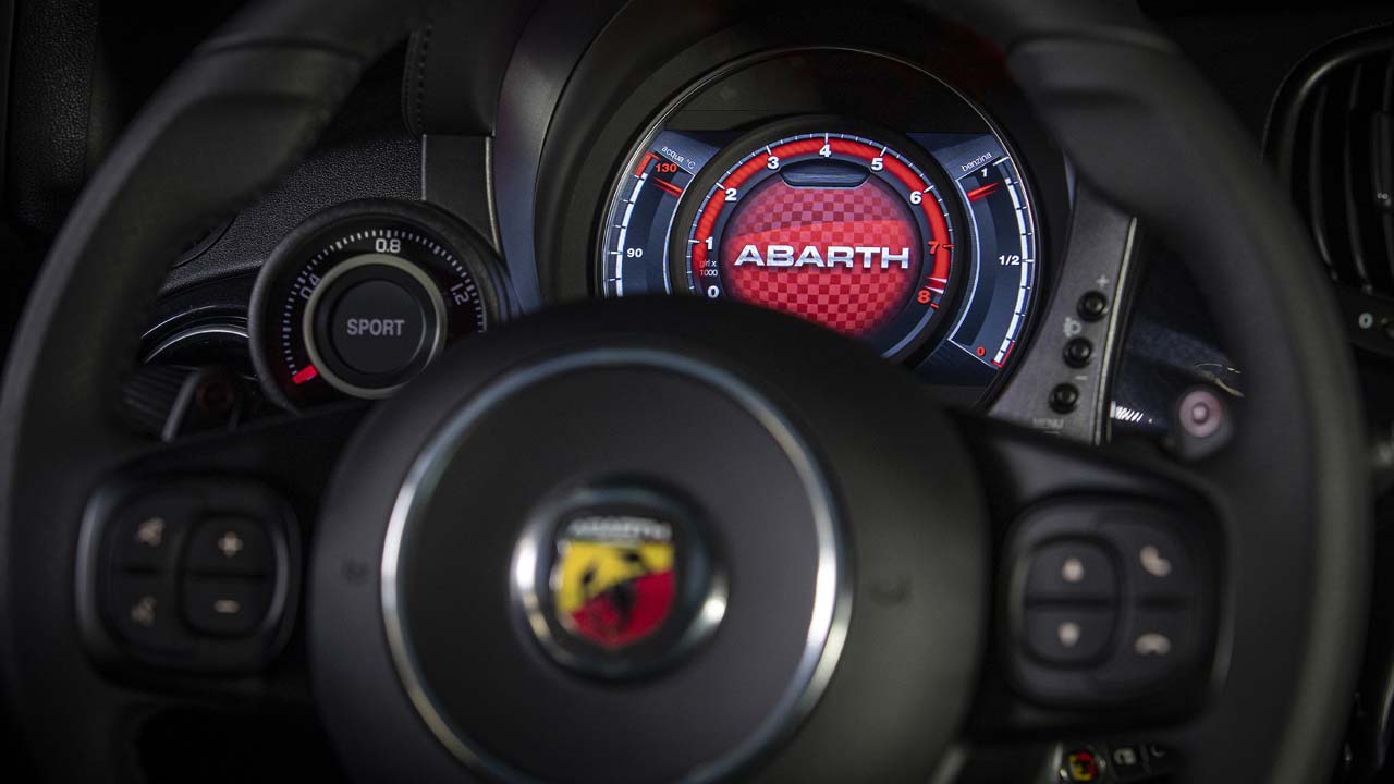Στο εσωτερικό τα νέα σπορ καθίσματα Abarth “Scorpioflage” έχουν επένδυση από μαύρο δέρμα και ειδική επεξεργασία ώστε να συγκρατούν καλύτερα το σώμα του οδηγού κατά τη γρήγορη οδήγηση. Στο προσκέφαλο η λέξη “Scorpioneoro” θα κυριαρχεί μαζί με την Ιταλική σημαία, ενώ το ταμπλό με τα ματ μαύρα στοιχεία, η χρυσή πλακέτα στο κεντρικό τούνελ και τα ειδικά ταπέτα θα ολοκληρώνουν την εικόνα.