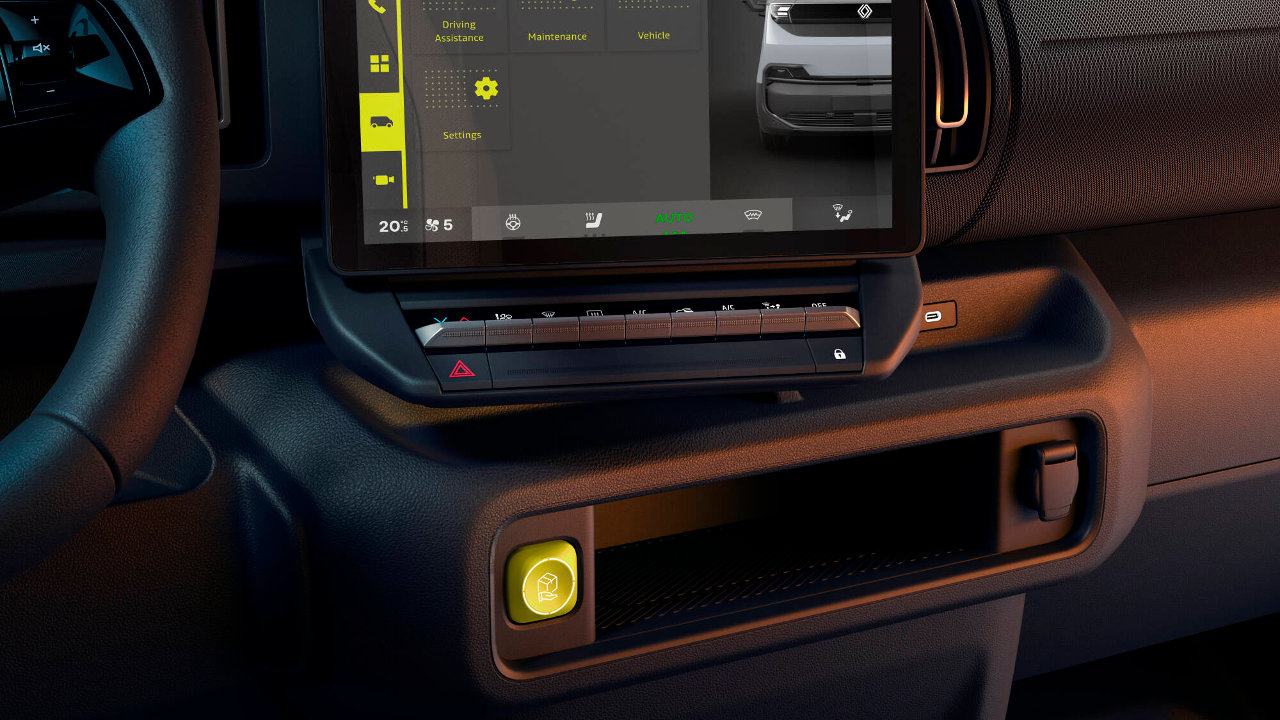 Διαθέτοντας τη μεγαλύτερη οθόνη στη γκάμα των LCV της Renault, αυτό το σύστημα προσφέρει πλοήγηση ειδικά σχεδιασμένη για LCV, λαμβάνοντας υπόψη τις διαστάσεις και το φορτίο του οχήματος, ώστε να αποφεύγονται οι δύσκολες διαδρομές. Με αυτόν τον τρόπο, το ενσωματωμένο σύστημα σχεδιασμού ηλεκτρικών διαδρομών, εμφανίζει τη βέλτιστη διαδρομή, προτείνοντας τις ιδανικές τοποθεσίες και χρόνους για στάσεις επαναφόρτισης, χάρη στην αυξημένη ακρίβεια μέτρησης της κατανάλωσης ενεργείας.