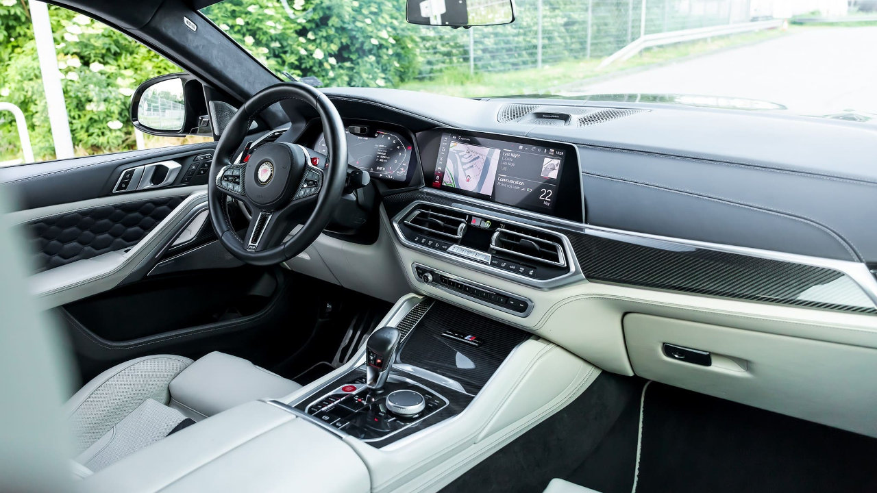 Στο εσωτερικό, οι αλλαγές στη συγκεκριμένη παραγγελία είναι περιορισμένες με τον ιδιοκτήτη του οχήματος να θέλει να το κρατήσεις κοντά στις εργοστασιακές προδιαγραφές. Η Manhart έχει ωστόσο και για την καμπίνα της X6 M τα δικά της διακοσμητικά στοιχεία από σφυρήλατο carbon, για το ταμπλό, τις πόρτες αλλά και τα καθίσματα.