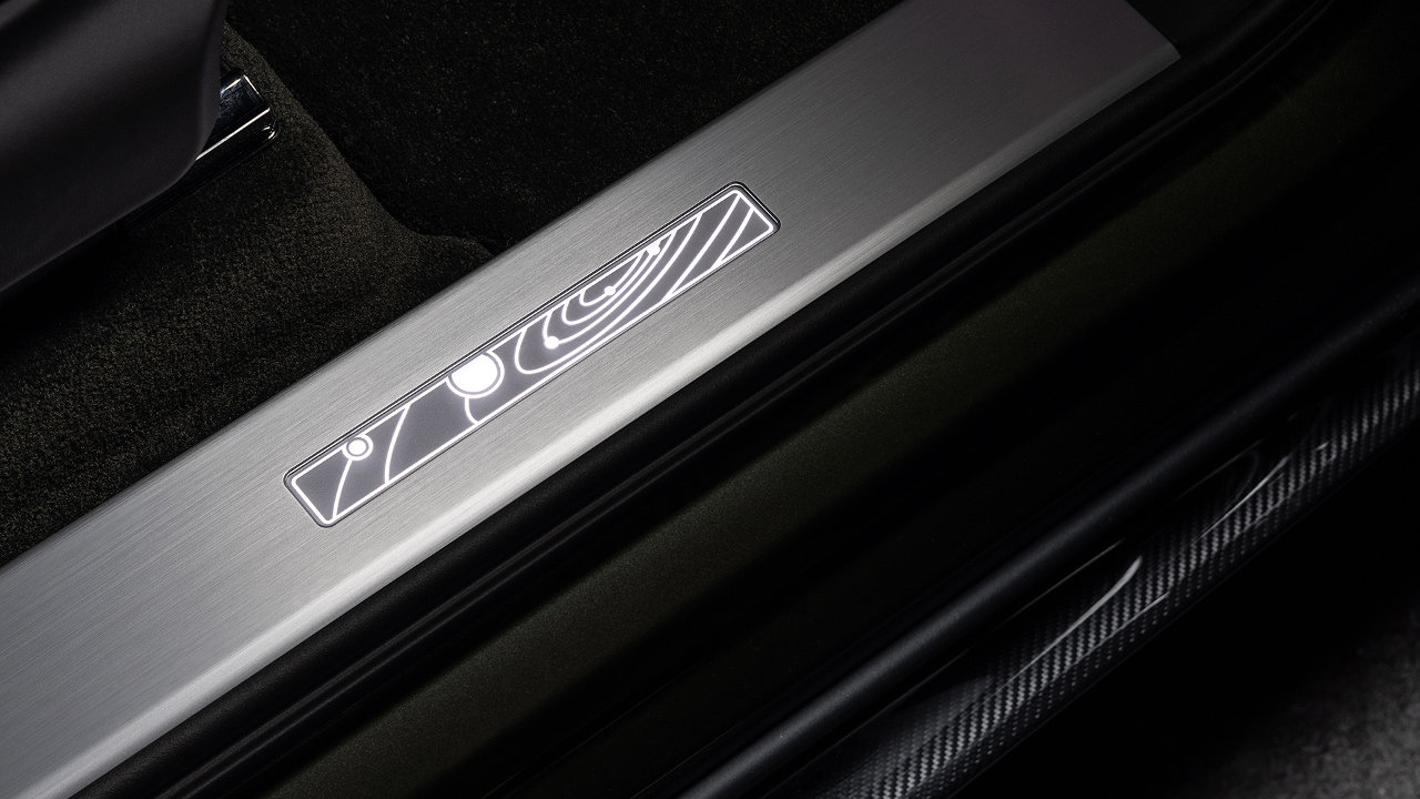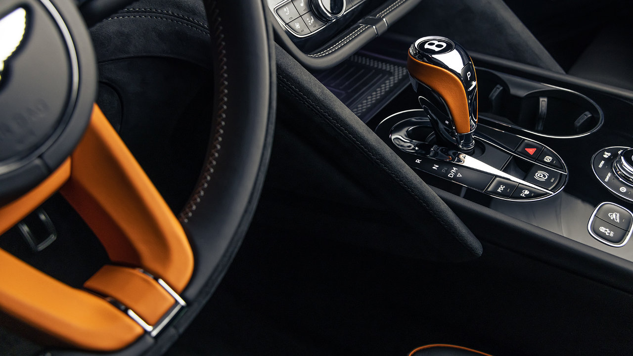 Στην καμπίνα, το πρώτο μεμονωμένο χαρακτηριστικό που αντικρύζουν οδηγός ή επιβάτες είναι τα φωτισμένα κατώφλια των θυρών που απεικονίζουν πλανήτες σε τροχιά γύρω από το ηλιακό σύστημα. Αυτά που σίγουρα εντυπωσιάζουν είναι τα πορτοκαλί πλαίσια που περιβάλλουν τις προσόψεις Galaxy Stone στο ταμπλό και στα πλαίσια των θυρών. Μοναδικές σατέν μαύρες γρίλιες ηχείων, στο κορυφαίας κατηγορίας ηχοσύστημα “Naim for Bentley”, αφήνουν να αναδειχθούν τα κεντρικά σήματα Naim, φωτισμένα σαν αστέρια τη νύχτα.