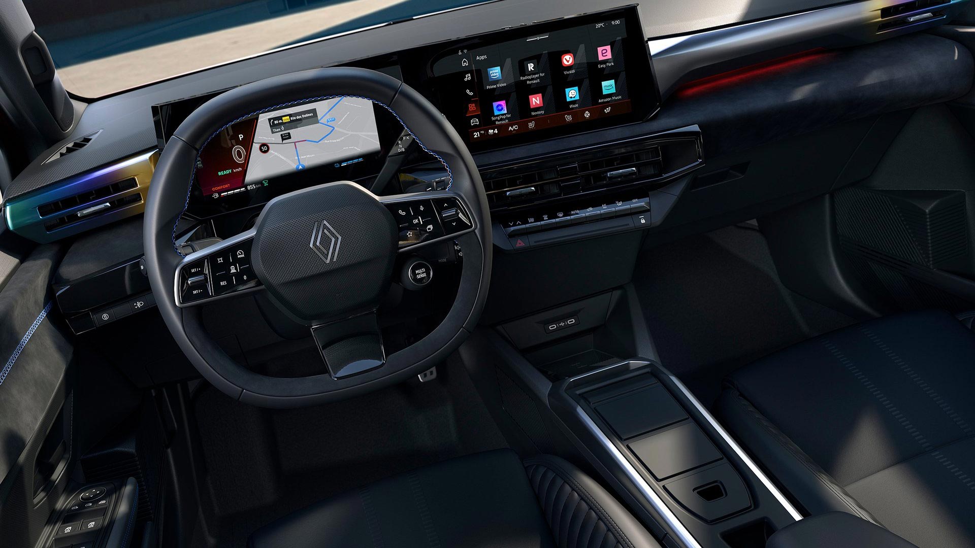 Οι εκδόσεις εξοπλισμού (Evolution, Techno και Esprit Alpine) διαφοροποιούνται σε εμφάνιση και εξοπλισμό. Η κορυφαία Esprit Alpine περιλαμβάνει σπορ λεπτομέρειες, bucket καθίσματα και ειδικές ζάντες. Όλα τα υλικά στο εσωτερικό δίνουν έμφαση στη βιωσιμότητα, με χρήση ανακυκλωμένων υφασμάτων και οικολογικών επιστρώσεων, χωρίς δέρμα ζωικής προέλευσης.