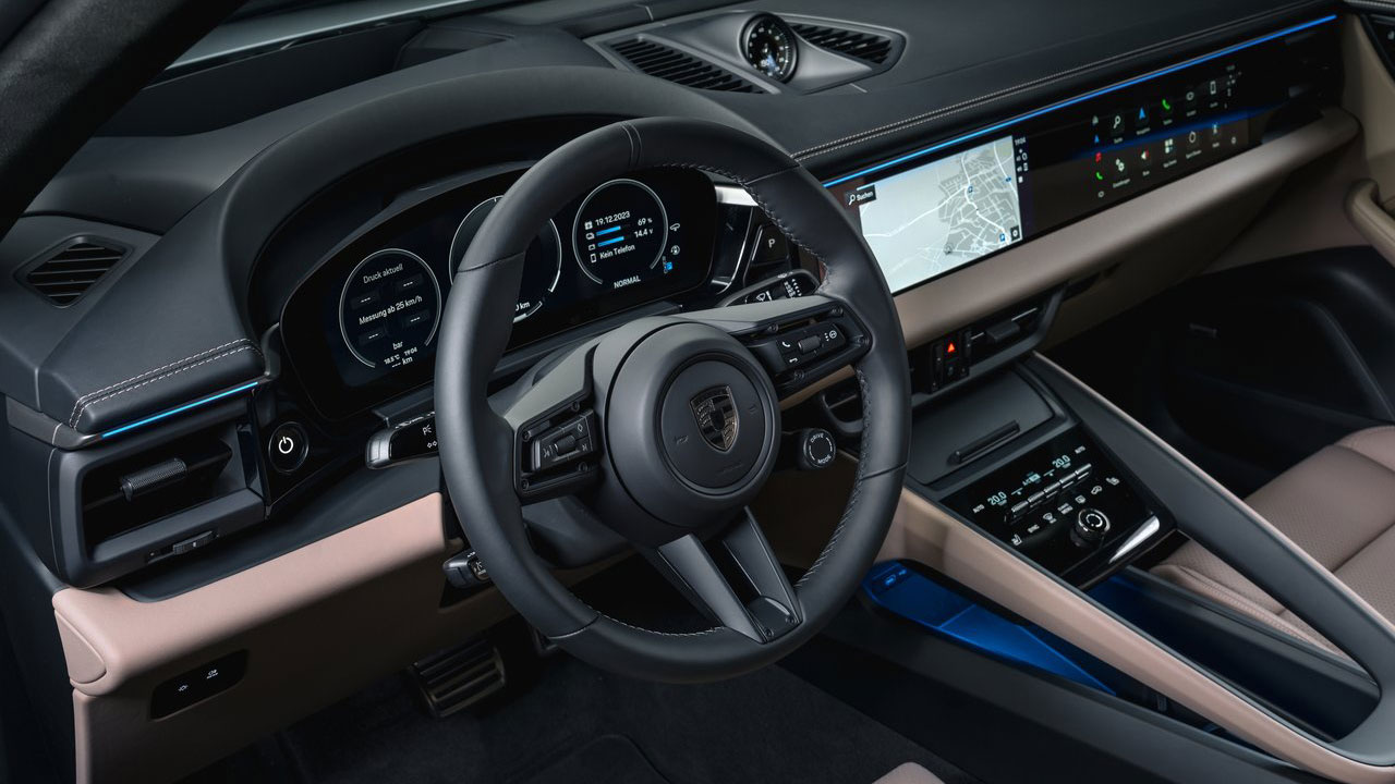 Όπως βλέπετε στην παραπάνω εικόνα, η νέα Porsche Macan εξοπλίζεται προαιρετικά με τρεις οθόνες στο εσωτερικό της. Στο κέντρο συναντάμε μία οθόνη αφής μεγέθους 10,9 ιντσών, μέσω της οποίας ο οδηγός μπορεί να ελέγχει όλα τα συστήματα ενημέρωσης και ψυχαγωγίας του γερμανικού SUV. Ίδιου μεγέθους είναι και αυτή που βρίσκεται στην πλευρά του συνοδηγού, ενώ πίσω από το τιμόνι υπάρχει οθόνη 12,6 ιντσών. Όσο για το head-up display, η γερμανική εταιρεία αναφέρει πως είναι ένα από τα μεγαλύτερα της αγοράς, με την επιφάνεια προβολής να αγγίζει τις 87 ίντσες.