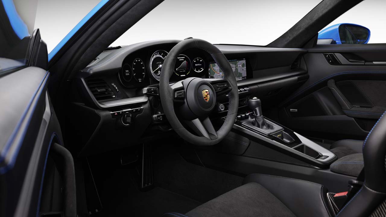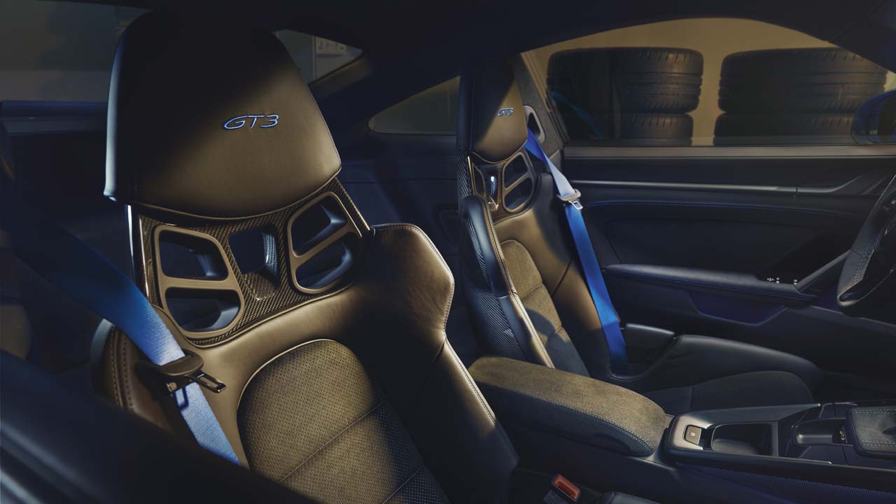 Η Porsche Exclusive Manufaktur “ασχολείται” επίσης με τη νέα 911 GT3 και τη συμπληρώνει με συγκεκριμένες επιλογές, όπως ελαφριά οροφή κατασκευασμένη από ίνες άνθρακα. Άλλα χαρακτηριστικά περιλαμβάνουν εξωτερικούς καθρέφτες από ανθρακονήματα, προβολείς με σκούρο LED matrix και αντίστοιχα πίσω φώτα αποκλειστικής σχεδίασης. Στο εσωτερικό, οι λεπτομέρειες του εξοπλισμού, το χρονόμετρο Sport Chrono, οι ζώνες ασφαλείας και οι διακοσμητικές λωρίδες έχουν κομψές πινελιές στο χρώμα του αμαξώματος ή σε άλλο επιθυμητό χρώμα.