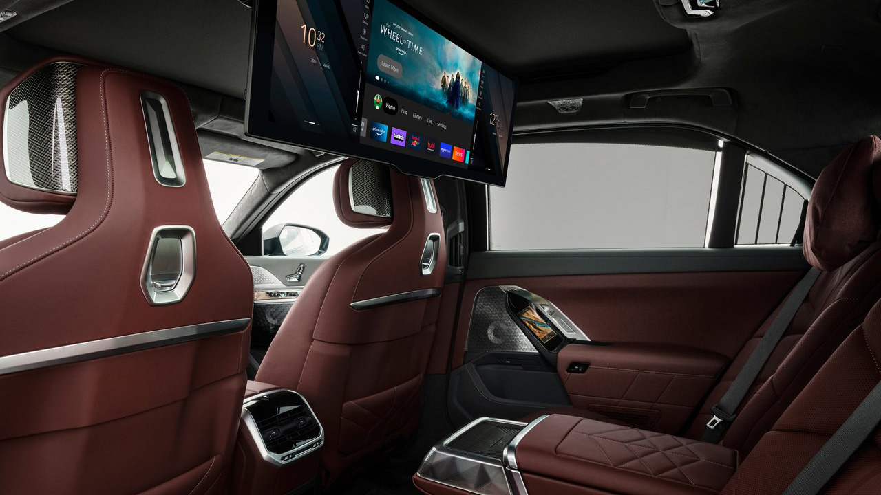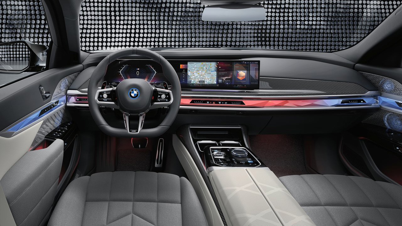 Περνώντας στο εσωτερικό, το περιβάλλον της BMW Σειρά 7 είναι άκρως προηγμένο, με το πιο εντυπωσιακό στοιχείο να είναι η τεράστια BMW Theatre Screen οθόνη για τους πίσω επιβάτες (προαιρετικός εξοπλισμός). Το μέγεθός της αγγίζει τις 31,3 ίντσες και η ανάλυση τα 8K. Εννοείται ότι οθόνες υπάρχουν και στην κεντρική κονσόλα, με αυτή που αναλαμβάνει τον ρόλο του πίνακα οργάνων να έχει μέγεθος 12,3 ιντσών και αυτήν που προορίζεται για ενημέρωση και ψυχαγωγία των επιβατών να φτάνει τις 14,9 ίντσες.