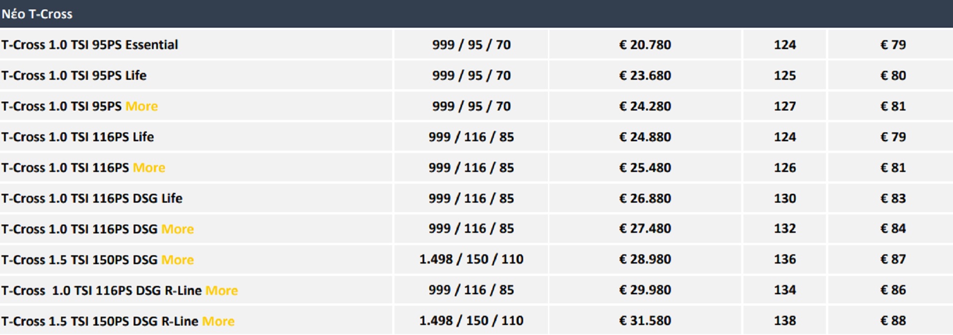 Οι τιμές του VW T-Cross στην Ελλάδα