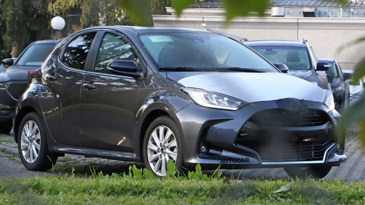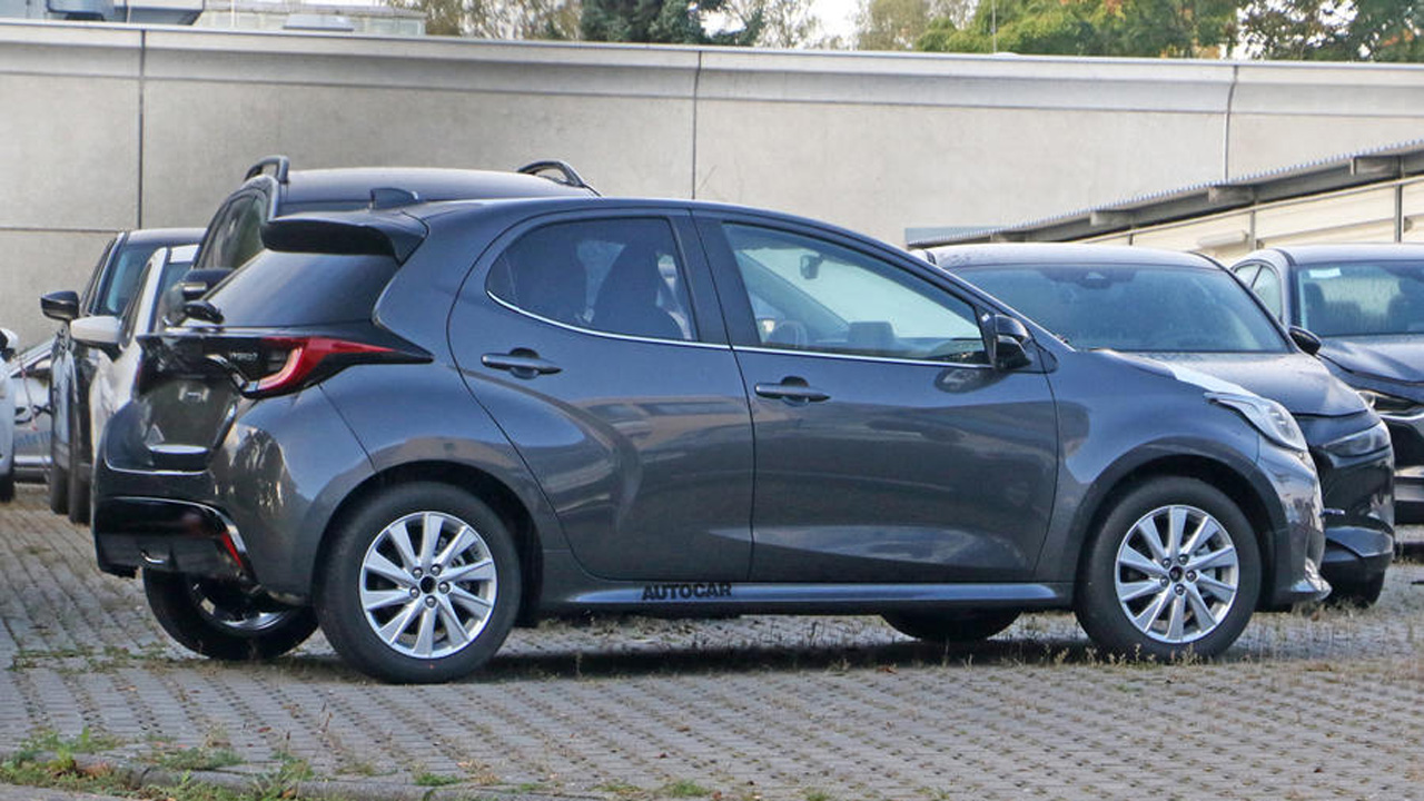 Οι κατασκοπευτικές φωτογραφίες που παραθέτουμε δείχνουν ένα Yaris με καλυμμένα τα σήματα, όμως κοιτώντας πιο προσεκτικά είναι εμφανές ότι ακριβώς κάτω από τις μαύρες ταινίες κρύβεται το σήμα της Mazda.