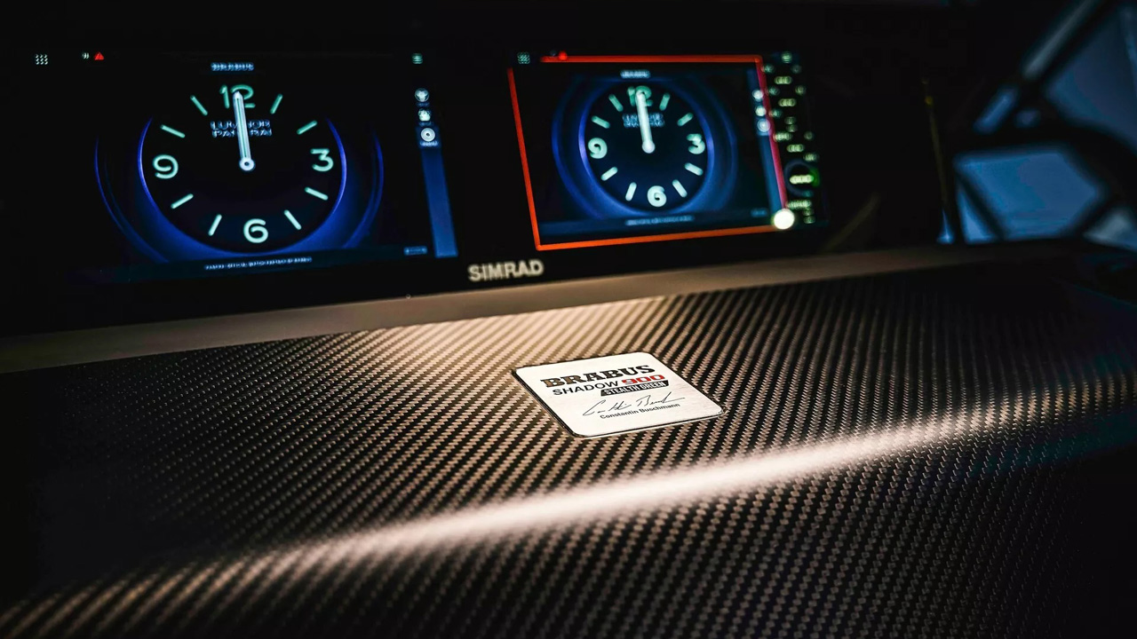 Το ταχύπλοο ονομάζεται Shadow 900 Stealth Green Signature Edition και δημιουργήθηκε από το τμήμα Brabus Marine. Τροφοδοτείται από δύο αγωνιστικούς κινητήρες Mercury Marine, κάθε ένας έχει χωρητικότητα 4,6 λτ. σε διάταξη V8 και η συνδυαστική ισχύς αγγίζει την απίστευτη τιμή των 900 ίππων. Κάπως έτσι, τα 4.100 κιλά του είναι σε θέση να μετακινούνται στο νερό με ταχύτητα που αγγίζει τους 60 κόμβους (110 χλμ./ώρα).