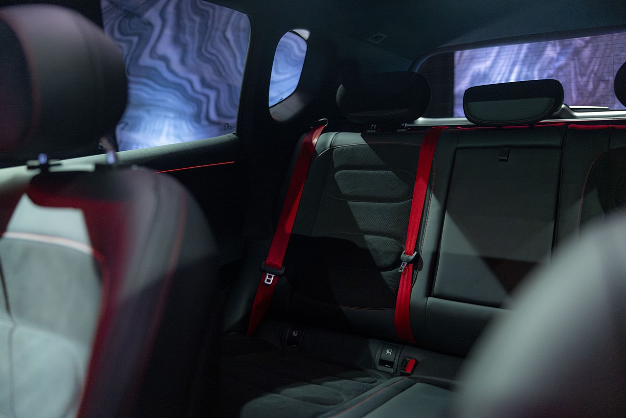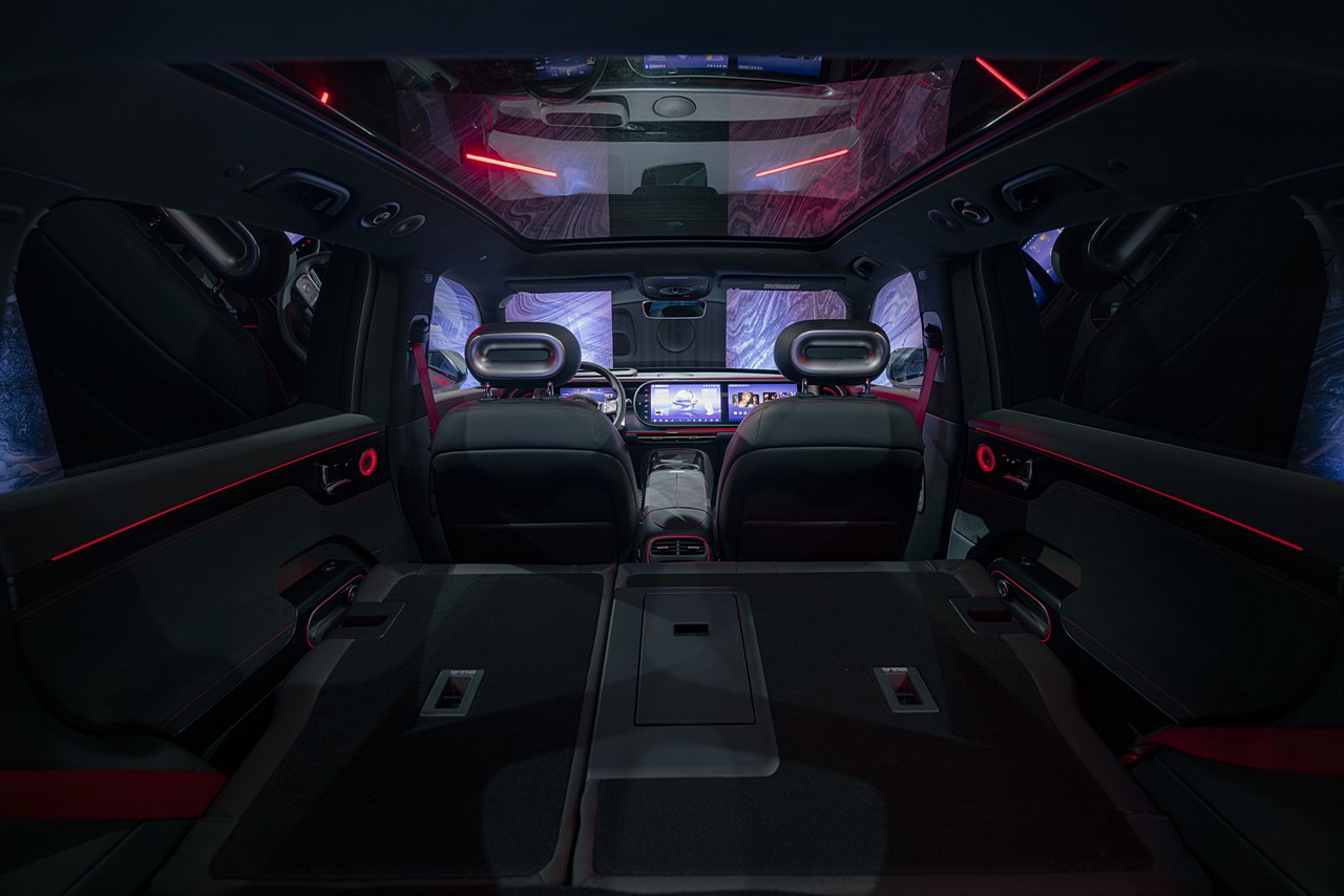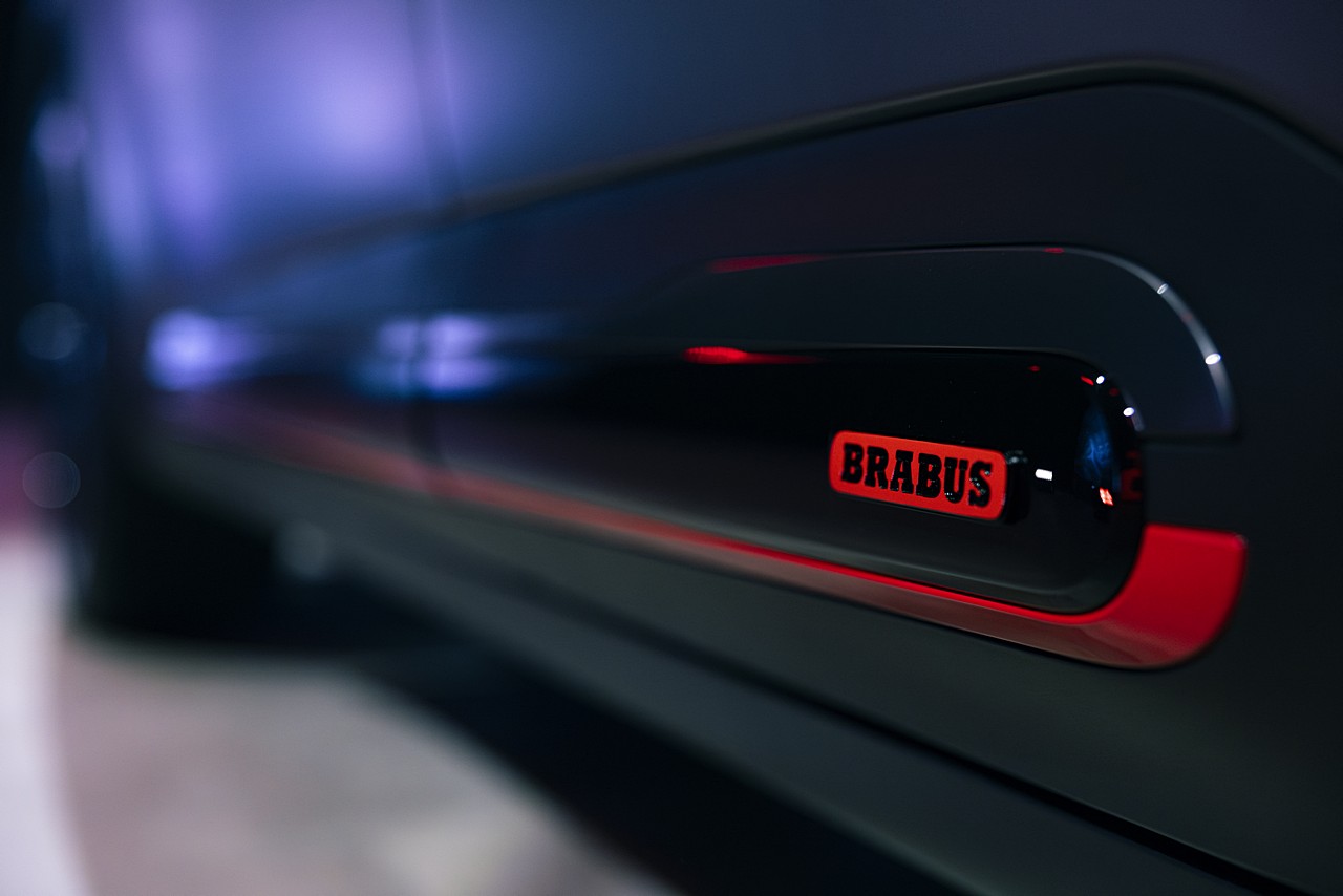 Στο εσωτερικό, τα υψηλής ποιότητας καθίσματα από μικροΐνες με λεπτομέρειες από D ιναμιψα προσφέρουν άνεση αλλά και έναν κομψό διάκοσμο. Τα εμπρός καθίσματα με λειτουργίες αερισμού και θέρμανσης, μαζί με τα θερμαινόμενα πίσω καθίσματα, εξασφαλίζουν ευχάριστες διαδρομές και τον χειμώνα. Το τιμόνι φέρει επένδυση Alcantara με φωτιζόμενο λογότυπο Brabus, ενώ η πανοραμική οροφή τύπου halo και η επένδυση οροφής από μικροΐνες ενισχύουν την premium ατμόσφαιρα. Τα σπορ πεντάλ, τα λογότυπα Brabus στο εσωτερικό και ο φωτισμός Ambient Light+ με 256 επιλογές χρωμάτων προσθέτουν επιπλέον πινελιές εξατομίκευσης.