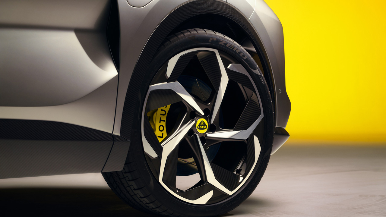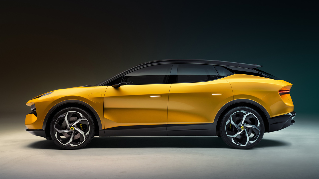 H Lotus την χαρακτηρίζει hyper-SUV, αγγίζει σε μήκος τα 5.103 χλστ., σε πλάτος τα 2.135 χλστ. και σε ύψος τα 1.630 χλστ. Στο εμπρός τμήμα συναντάμε full LED φωτιστικά σώματα, ενώ ένα από τα πιο εντυπωσιακά μέρη είναι οι αεραγωγοί στο καπό. Στο πλαϊνό τμήμα συναντάμε “κρυφές” χειρολαβές, ζάντες που προαιρετικά φτάνουν τις 23 ίντσες και “φιλοξενούν” κεραμικά δισκόφρενα, ενώ οι εξωτερικοί καθρέφτες έχουν αντικατασταθεί με κάμερες. Όσο για το πίσω τμήμα, εκεί υπάρχει αεροτομή δύο τμημάτων και μία LED λωρίδα που διατρέχει κατά πλάτος το αμάξωμα.
