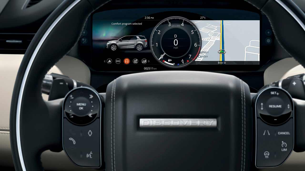 Περνώντας στο εσωτερικό, οι αλλαγές είναι σίγουρα πιο πολλές σε σχέση με αυτές του αμαξώματος. Το σύστημα πολυμέσων Tech Pro πρωταγωνιστεί και απαρτίζεται από οθόνη αφής 10,25 ιντσών, ενώ ο οδηγός έχει στην διάθεσή του έναν ψηφιακό πίνακα οργάνων 12,3 ιντσών. Η κεντρική κονσόλα έχει νέο σχεδιασμό, με περισσότερες επιφάνειες αφής να έχουν αντικαταστήσει τα κουμπιά, ενώ διαθέτει και ζώνη φόρτισης κινητού τηλεφώνου.Το εσωτερικό του νέου Land Rover Discovery Sport είναι 7θέσιο ή για την ακρίβεια 5+2 θέσεων. Ο χώρος αποσκευών είναι στα 1.179 λίτρα (5θέσιο) και τα 1.794 λίτρα (με όλα τα καθίσματα πλην της πρώτης σειράς, αναδιπλωμένα).