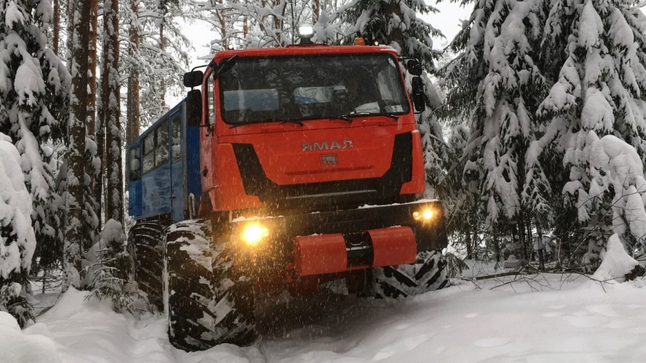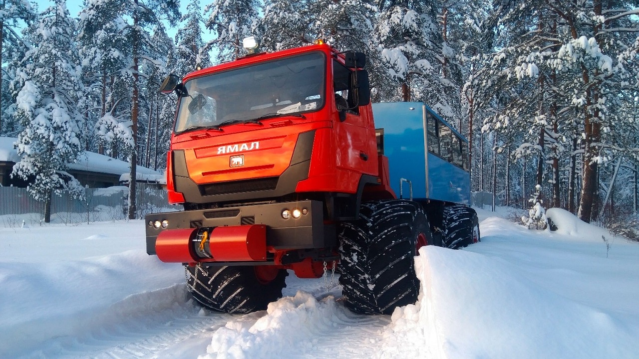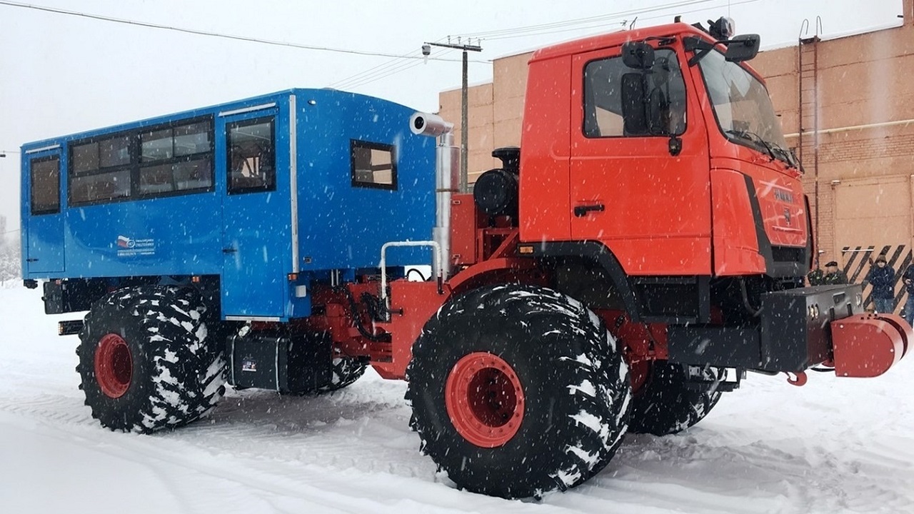 Το συγκεκριμένο, μοναδικό στον κόσμο όχημα, εξοπλίζεται με την καμπίνα ενός φορτηγού της MAZ-MAN. Ακριβώς από πίσω υπάρχει μία θερμαινόμενη υπερκατασκευή, στην οποία τοποθετήθηκαν καθίσματα για τη μεταφορά των επιβατών. Όλα αυτά τοποθετήθηκαν σε μία αρθρωτή κατασκευή, δηλαδή το σασί αποτελείται από δύο κομμάτια. Έτσι, είναι εφικτή η απότομη αλλαγή πορείας του οχήματος για την αποφυγή εμποδίων.