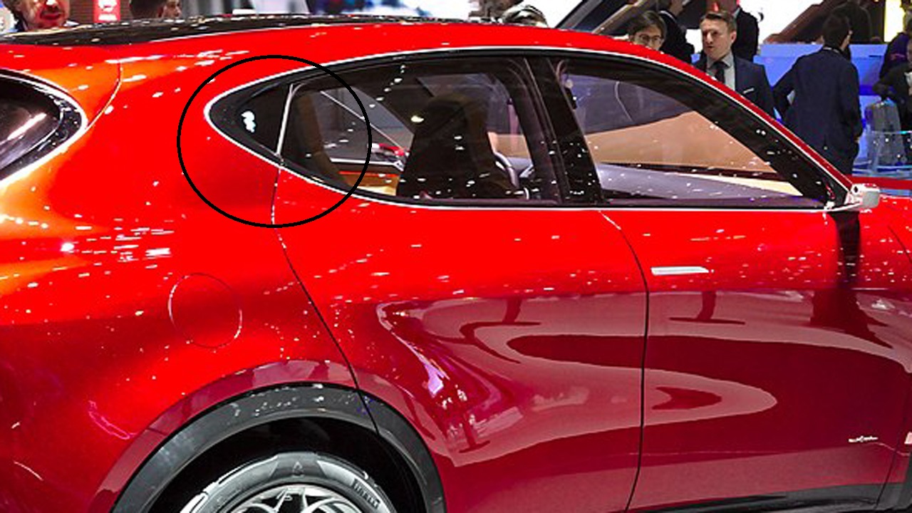 Πράγματι, στη διάρκεια της δοκιμής (την οποία θα διαβάσετε σε μερικές ημέρες), διαπίστωσα τον ιδιαίτερο σχεδιασμό στις πίσω πόρτες, οι οποίες ανοίγουν μαζί με ολόκληρο το πλαίσιο των παραθύρων. Κάτι τέτοιο δεν ίσχυε στο πρωτότυπο αυτοκίνητο (το κόκκινο στις εικόνες). Για ποιον λόγο, λοιπόν, έγινε η αλλαγή στο σημείο που είναι κυκλωμένο στις φωτογραφίες που ακολουθούν;