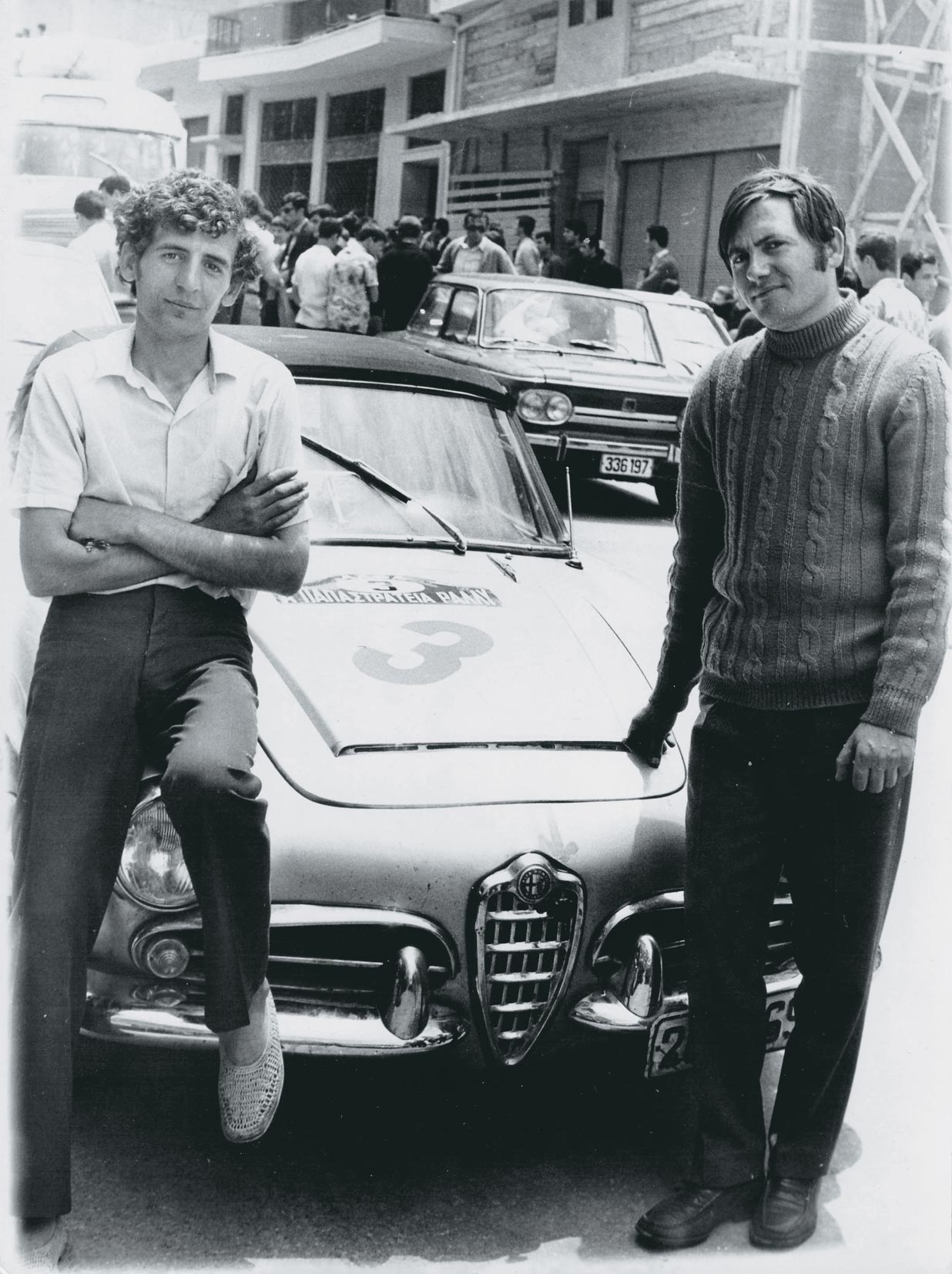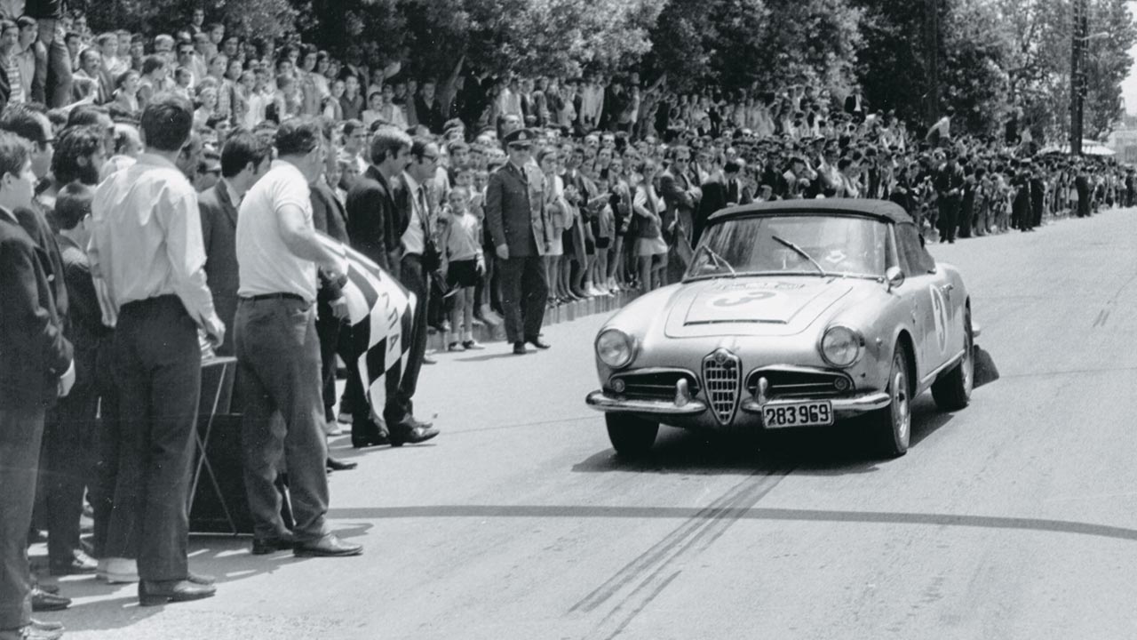 Ράλι Παπαστράτεια 1970, τρέχουμε στο Αγρίνιο με τον φίλο μου και κορυφαίο μηχανικό Χρήστο Βαλασόπουλο, γνωστό σαν Μπούμπη, με μια Alfa Romeo Giulia Veloce Spider 1.600 κυβικά. Στον αγώνα αυτό ο Μπούμπης έτρεξε με το ψευδώνυμο Πάρις. Δεν θα σταθώ στα τελικά αποτελέσματα, γιατί κρύβουν πολύ στενοχώρια, αλλά στον μοναδικό ήχο της εξάτμισης της Veloce, χωρίς ίχνος σιλανσιέ, αφού μετά το χταπόδι εξαγωγής γύριζε ελεύθερα και κατέληγε κάτω από την πόρτα! Παράλληλα τα δύο διπλά καρμπυρατέρ Weber χωρίς φίλτρα έκαναν δαιμονισμένο θόρυβο σαν κάποιο τεράστιο μηχάνημα να κομμάτιαζε ολόκληρα δέντρα.