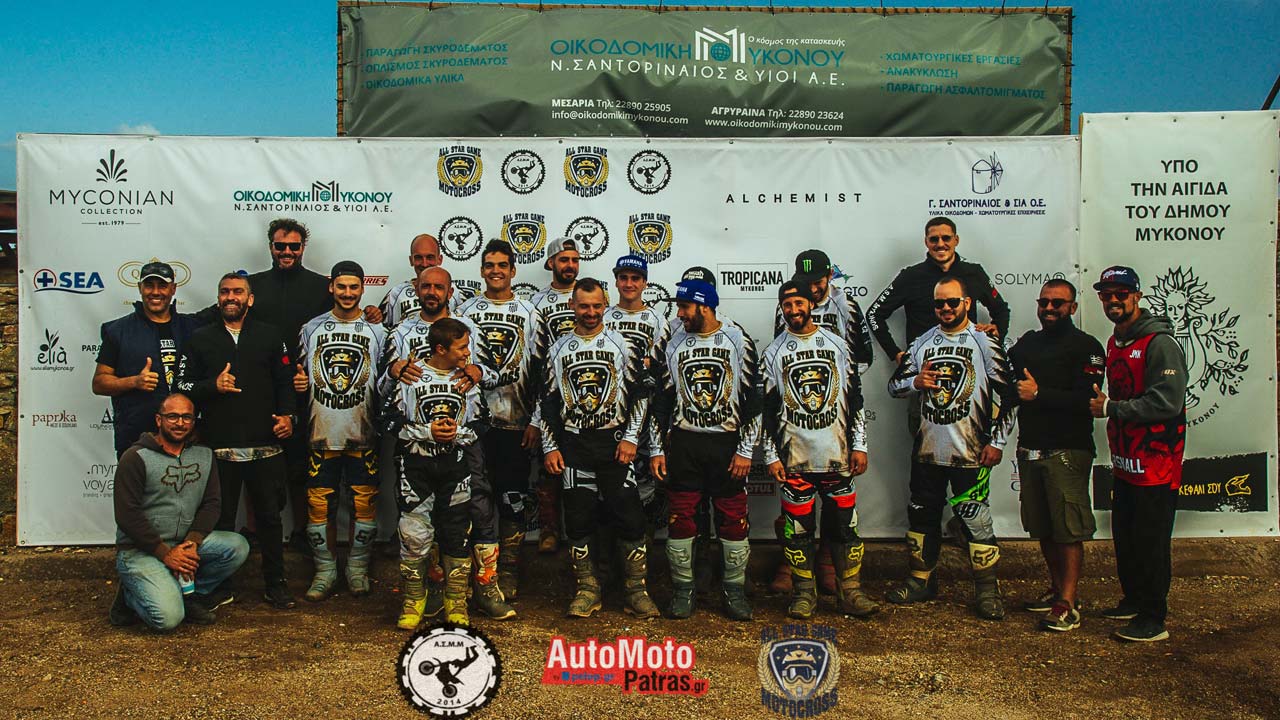 Το Αθλητικό Σωματείο Μοτοσυκλετιστών Μυκόνου διοργάνωσε στο νησί των Ανέμων, το All Star Game Motocross από την Παρασκευή 25 έως την Κυριακή 27 Οκτωβρίου. Μια εκδήλωση με μοναδικό στόχο και σκοπό την προβολή και προώθηση του Ελληνικού Motocross, στο ευρύ κοινό.