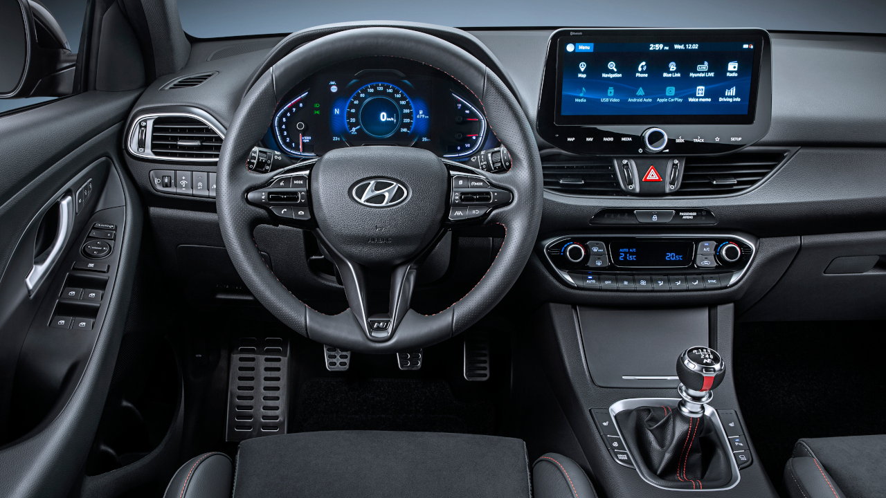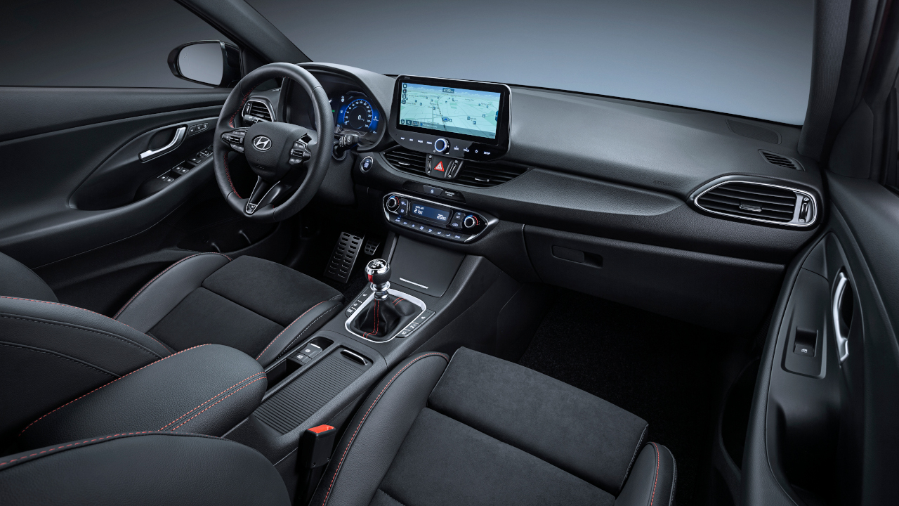 Στην καμπίνα του ανανεωμένου i30 οι αλλαγές εντοπίζονται στους ανασχεδιασμένους αεραγωγούς αλλά και στον τρόπο πληροφόρησης με νέα οθόνη με διαγώνιο στις επτά ίντσες για τον πίνακα πληροφοριών του οδηγού και μια σαφώς μεγαλύτερη οθόνη αφής στις 10,25 ίντσες για το σύστημα πολυμέσων. Το τελευταίο είναι πλήρως συμβατό με Android Auto και Apple CarPlay, ενώ από το ερχόμενο καλοκαίρι η σύνδεση με τα κινητά θα μπορεί να γίνεται ασύρματα.
