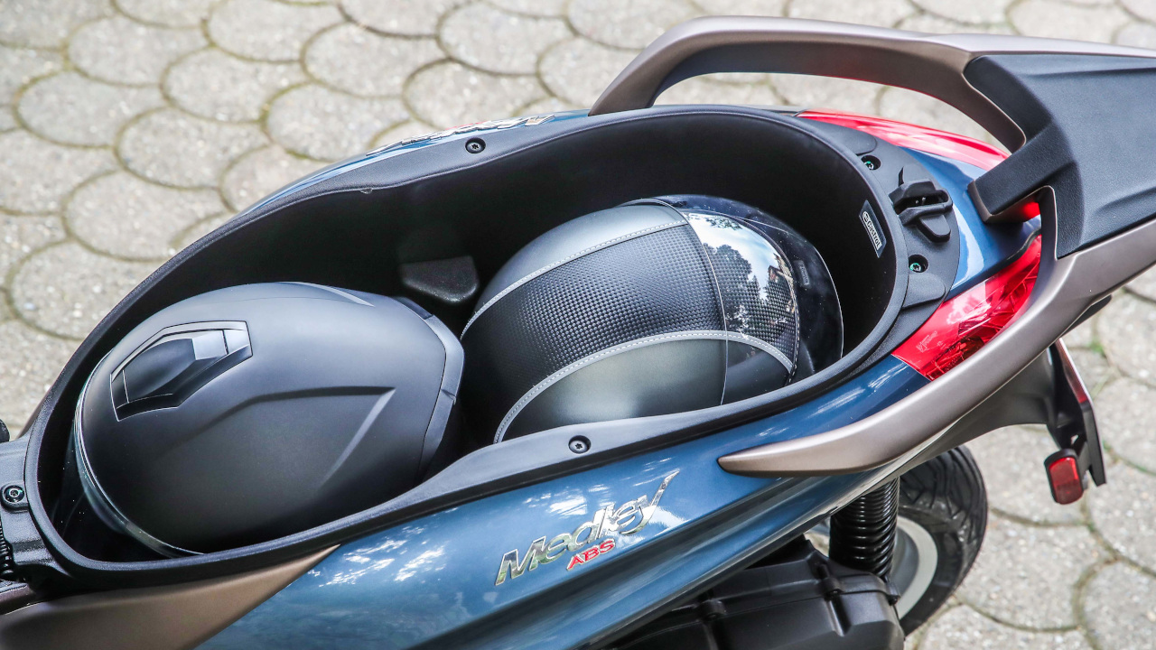 Κάτω από τη σέλα, που ανοίγει ηλεκτρικά από το τιμόνι, ο μεγάλος χώρος των 36 λίτρων, για δύο full face κράνη, παραμένει, ενώ έξτρα αποθηκευτικούς χώρους θα βρείτε στο ντουλαπάκι της ποδιάς, όπου υπάρχει και μια θύρα USB. Για τη μεταφορά επιπλέον αντικειμένων φροντίζει ο αναδιπλούμενος γάντζος στην ποδιά, ενώ το ρεζερβουάρ έχει μετακομίσει στο κέντρο της ποδιάς.