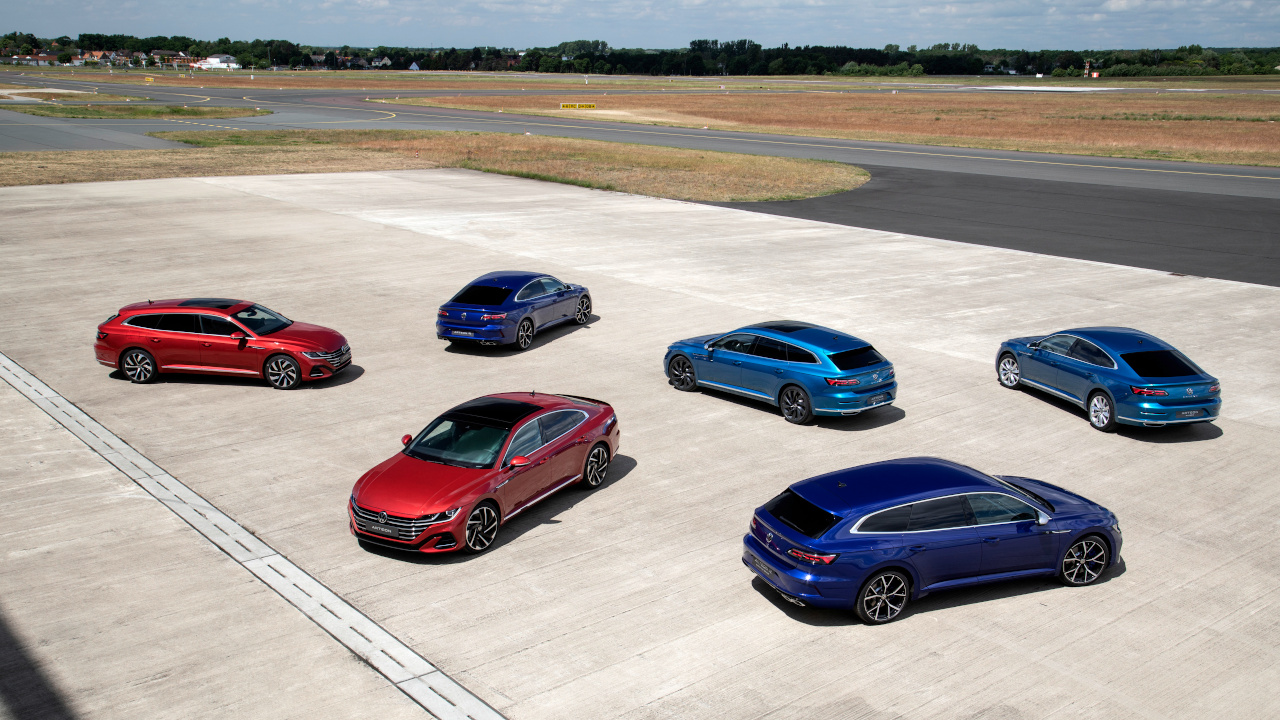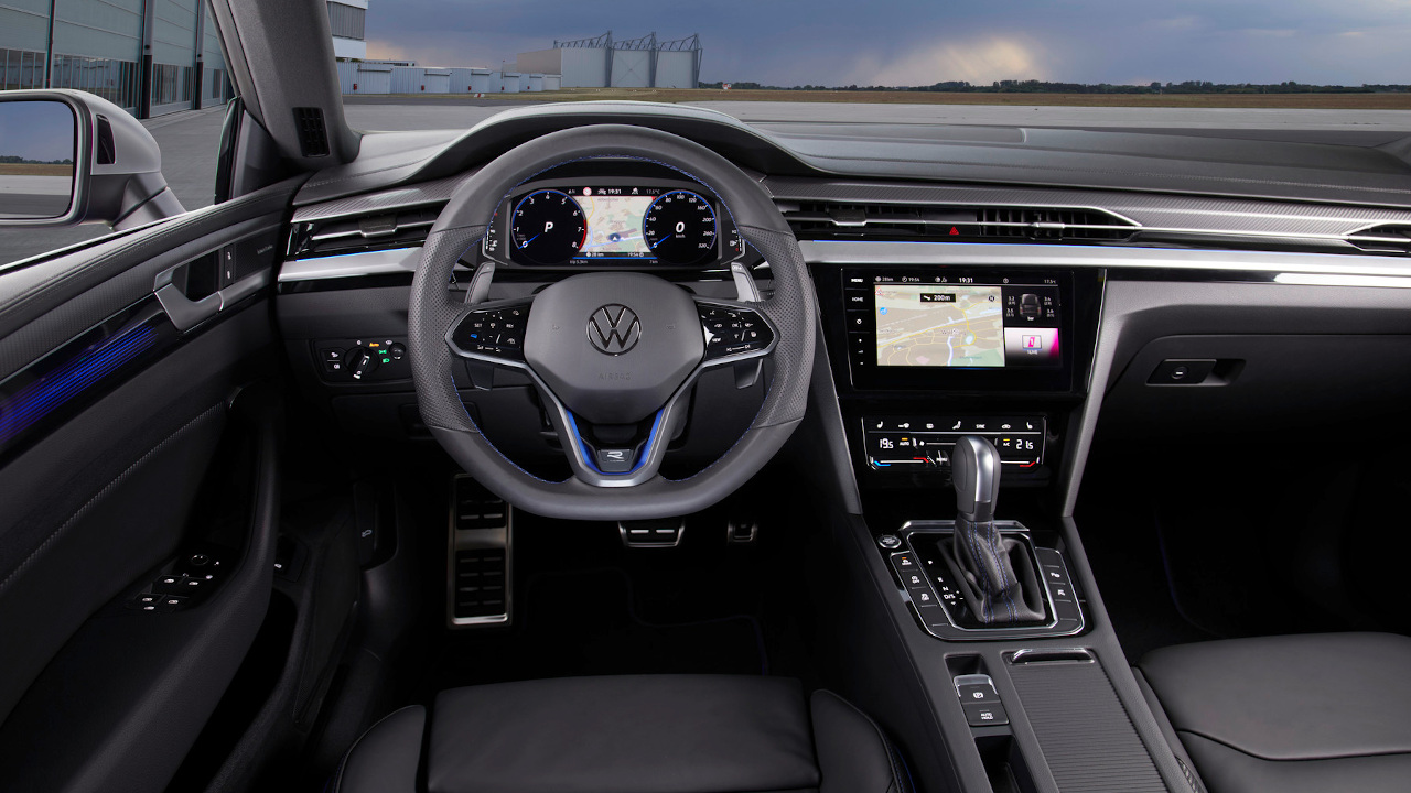 Στην κορυφή της γκάμας των Arteon τοποθετείται η έκδοση R των 320 ίππων, ενώ για πρώτη φορά θα υπάρχει διαθέσιμη και plug-in υβριδική έκδοση που επιτρέπει στο Arteon να κινείται αμιγώς ηλεκτρικά για μικρές αποστάσεις.