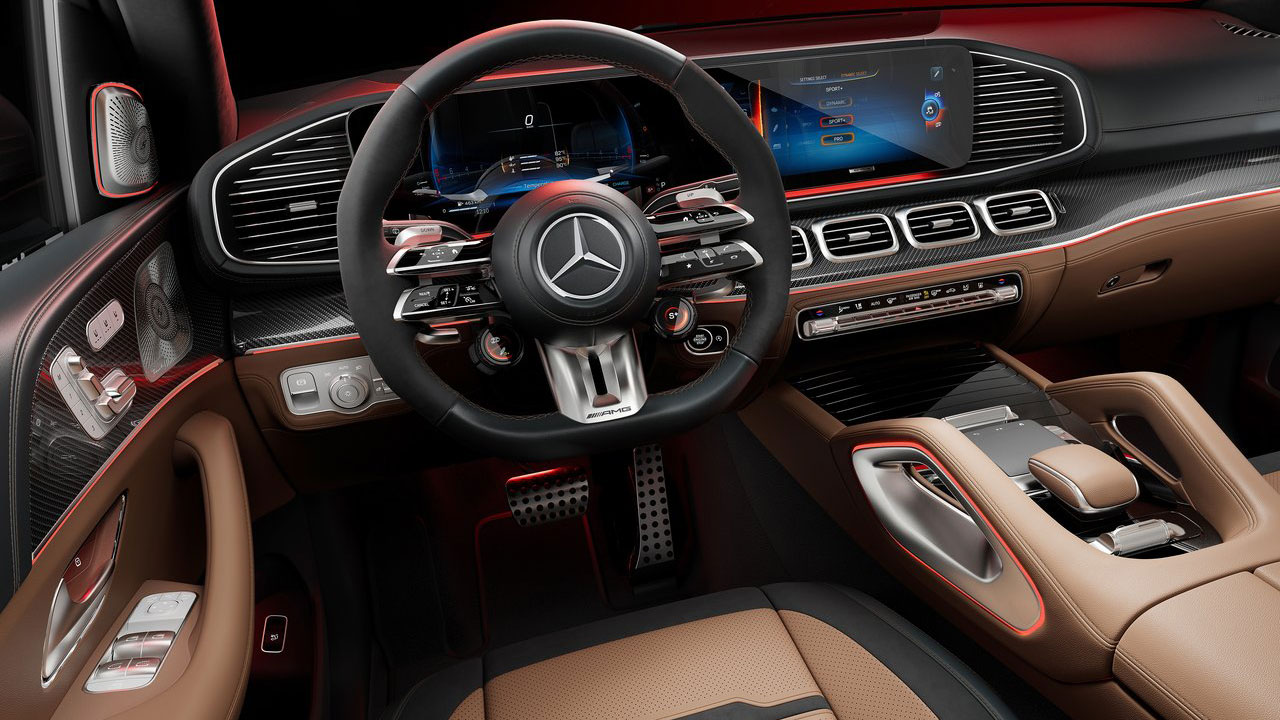 Περνώντας στο εσωτερικό της αποκλειστικά 7θέσιας Mercedes GLS, το ενδιαφέρον στρέφεται κυρίως στην αναβάθμιση του συστήματος ενημέρωσης και ψυχαγωγίας MBUX. Αυτό διαθέτει μία σειρά από νέες λειτουργίες, όπως για παράδειγμα το “διάφανο καπό”, όπως το ονομάζει η Mercedes. Πρόκειται για την δυνατότητα που δίνεται στον οδηγό να παρατηρεί τι συμβαίνει ακριβώς κάτω από τους εμπρόσθιους τροχούς, μέσω καμερών που ενεργοποιούνται στο πρόγραμμα “Off Road”.