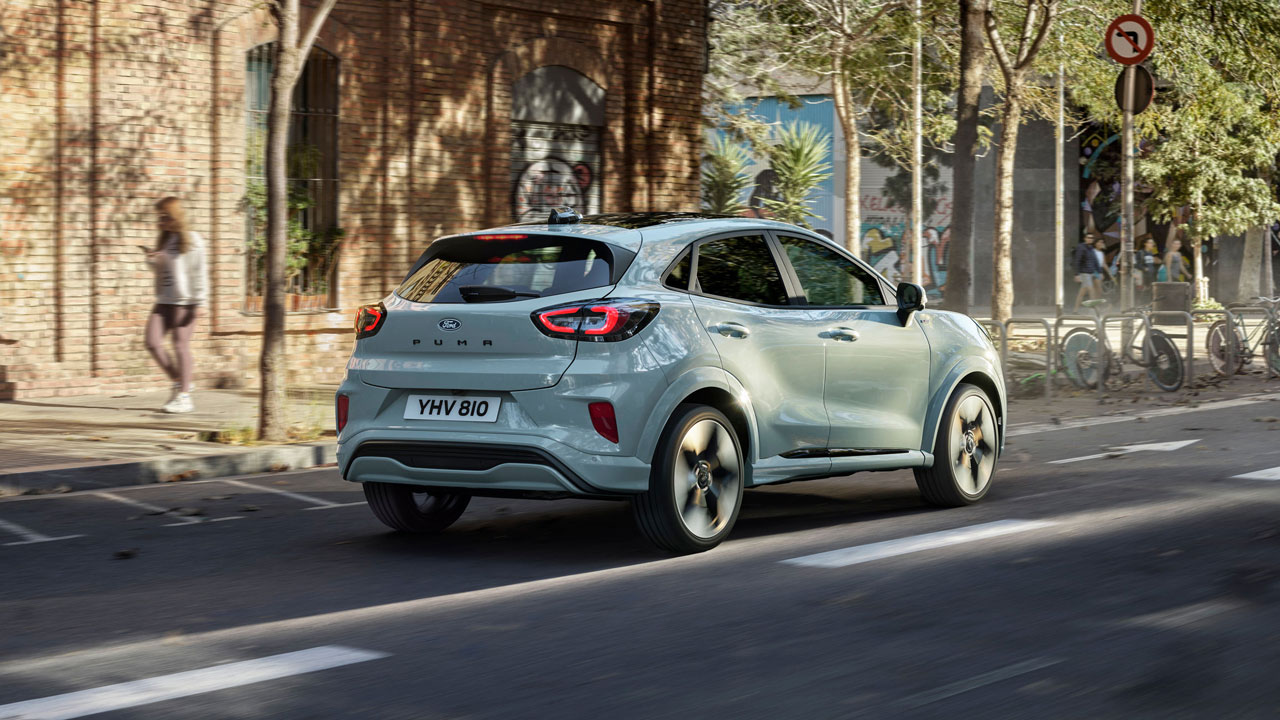 Περνάμε στην εξωτερική εμφάνιση του μοντέλου και, όπως μπορείτε να δείτε στις σχετικές εικόνες, μπροστά υπάρχουν ολοκαίνουργια φωτιστικά σώματα. Το νέο Ford Puma διατίθεται σε έξι εντυπωσιακά χρώματα, συμπεριλαμβανομένου του νέου για το μοντέλο “Cactus Grey”, ενώ μπορεί να εξοπλιστεί με ζάντες αλουμινίου διαμέτρου από 17 έως 19 ίντσες. Ένα ακόμα πρόσθετο διακριτικό του αυτοκινήτου είναι ο φωτισμός εδάφους που προβάλλει το λογότυπο του Puma κατά την είσοδο ή την έξοδο του οδηγού από το όχημα.