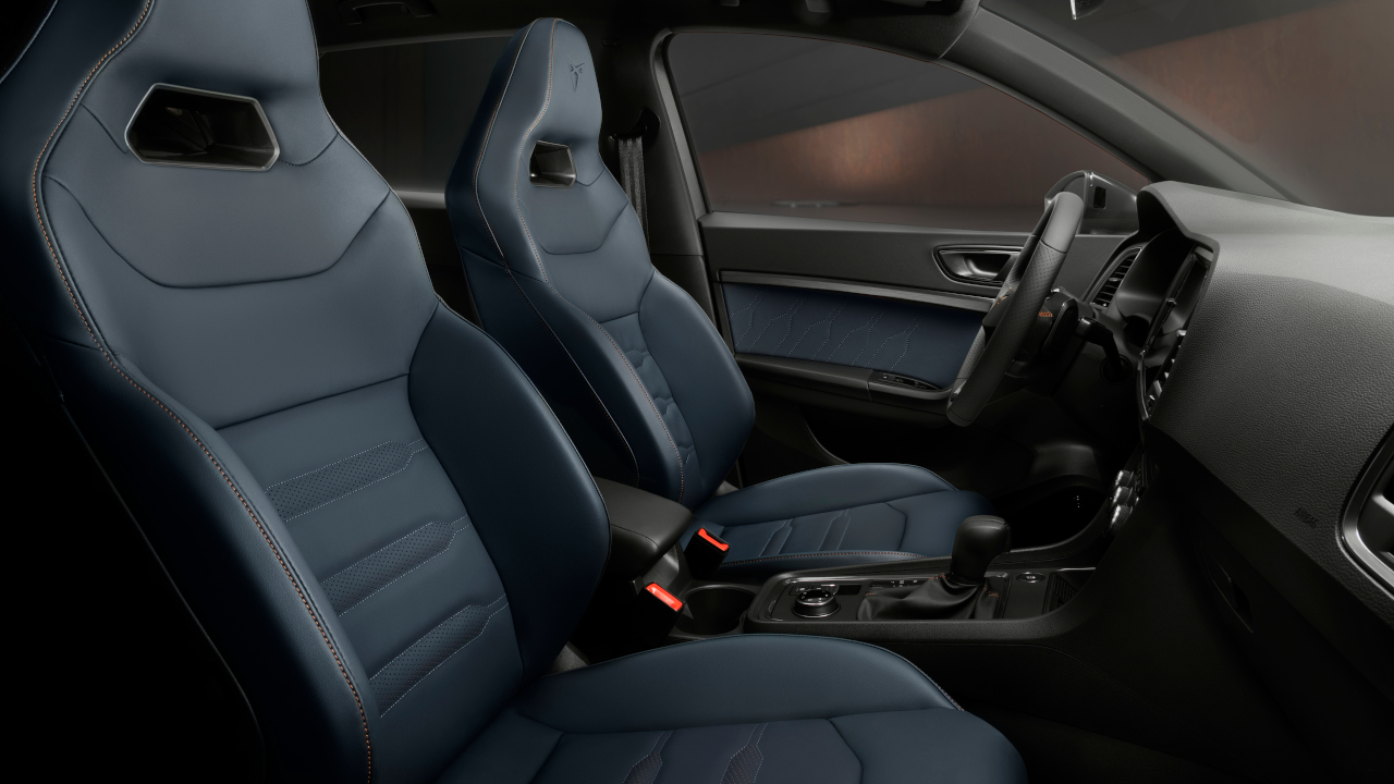 Ο σπορ αέρας της εξωτερικής σχεδίασης συνεχίζεται και στο εσωτερικό με πρωταγωνιστές τα μπάκετ καθίσματα του Cupra Ateca που ανήκουν πλέον στον στάνταρ εξοπλισμό. Το τιμόνι είναι νέας σχεδίασης και φέρει πλέον ενσωματωμένο το κουμπί της εκκίνησης του 4κύλινδρου μοτέρ αλλά και εκείνο που δίνει τη δυνατότητα στον οδηγό να διαλέξει μεταξύ των έξι οδηγικών προφίλ που έχει στη διάθεση του -Normal, Sport, CUPRA, Individual, Snow και off-road. Μεγαλύτερα είναι και τα paddles του κιβωτίου. Προαιρετικά είναι διαθέσιμη και δερμάτινη επένδυση για τα καθίσματα ενώ στο εσωτερικό ξεχωρίζουν οι χάλκινης απόχρωσης λεπτομέρειες και ραφές.