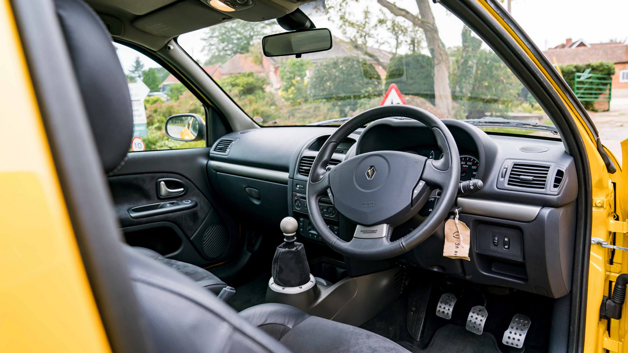 Το εικονιζόμενο Renault Clio V6 βγήκε από το εργοστάσιο το 2005, γεγονός που σημαίνει ότι ανήκει στην δεύτερη γενιά του μοντέλου (γνωστή και ως Phase 2). Πρόκειται για ένα από τα μόλις 1.309 αντίτυπα που δημιουργήθηκαν και η απόχρωση “Liquid Yellow” το κάνει να είναι ακόμα πιο σπάνιο, μιας και στην αγορά του Ηνωμένου Βασιλείου μόλις 18 μονάδες κυκλοφόρησαν σε αυτή την απόχρωση.