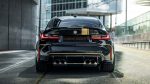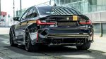 Οι σημαντικότερες αλλαγές, βέβαια, έχουν γίνει στο αισθητικό επίπεδο, όπου η κατάμαυρη BMW M3 Competition εξοπλίζεται με bodykit που αποτελείται από carbon κομμάτια. Μερικά εξ’ αυτών είναι το εμπρός lip, οι πλευρικές ποδιές και ο διαχύτης στο πίσω μέρος. Ασφαλώς δεν απουσιάζουν οι χρωματικές επεμβάσεις στο αμάξωμα με το χαρακτηριστικό χρυσαφί χρώμα του οίκου να κάνει αντίθεση με το μαύρο, ενώ το κερασάκι στην τούρτα είναι οι ζάντες 21 ιντσών με αποστάτες και διαστάσεις ελαστικών 255/30 και 295/25 εμπρός/πίσω.