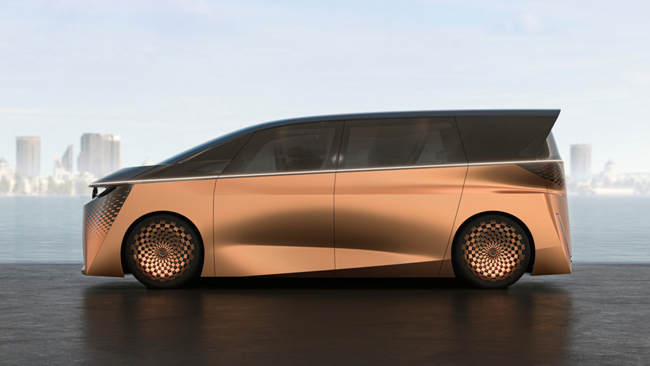 Τα πλαϊνά ρέουν διαγώνια από το μπροστινό προς το πίσω φτερό για υψηλότερη αεροδυναμική απόδοση τονίζοντας την εντύπωση της ομαλής κίνησης που προκύπτει από το συνδυασμό EV και αυτόνομης μετάδοσης κίνησης. Η λευκή γραμμή στο μέσο χρησιμεύει ως προβολέας, ενώ οι ζάντες με μοτίβο kumiko και η απαλή, ευθεία γραμμή του αμαξώματος προσδίδουν μια χαρακτηριστική εμφάνιση στο concept των Ιαπώνων.