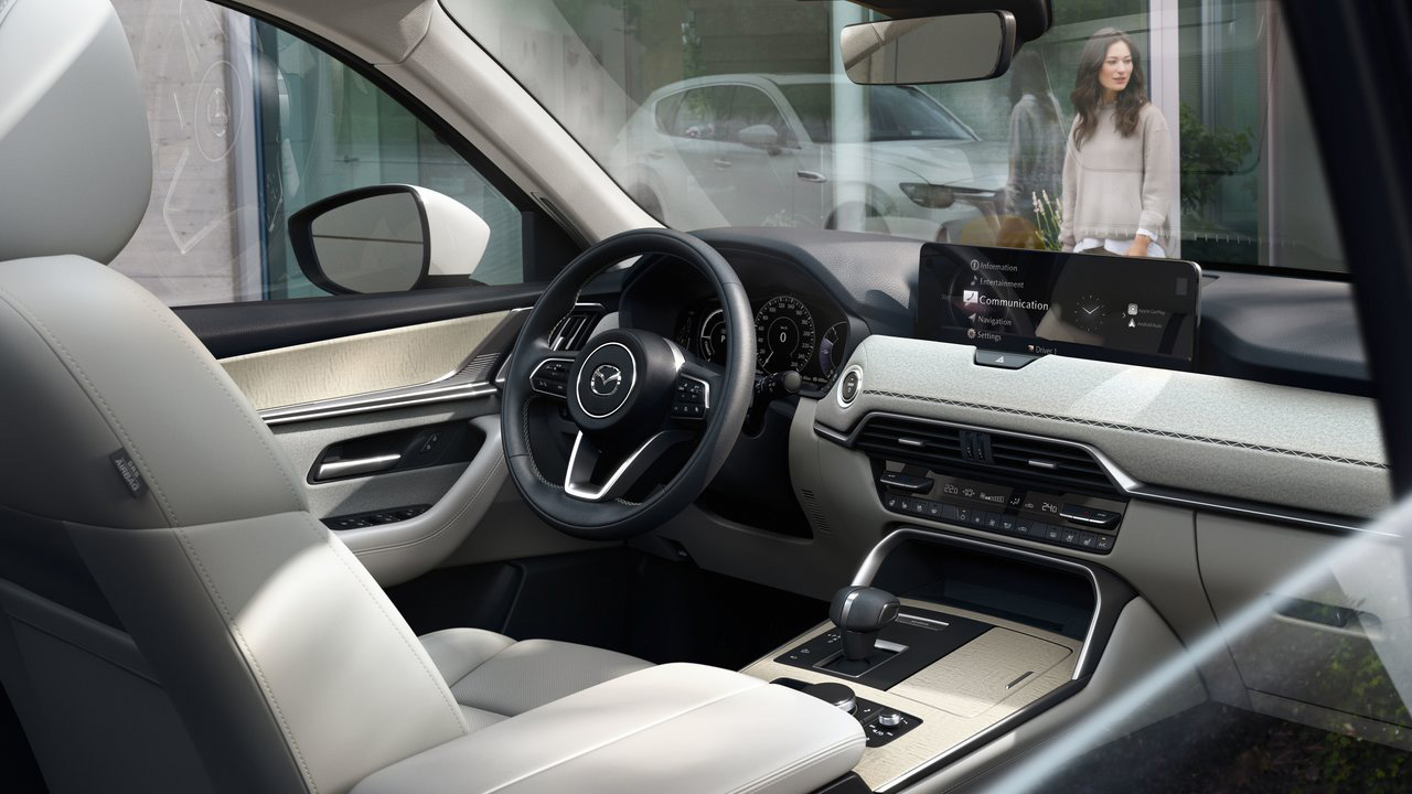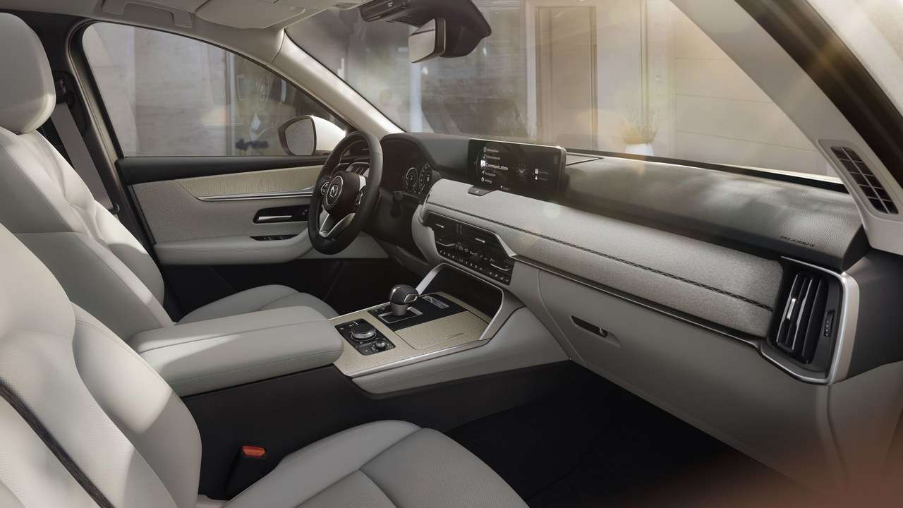 Το εσωτερικό διακρίνεται για την κομψή σχεδίαση και τα υψηλής ποιότητας υλικά, αναμειγνύει για παράδειγμα ξύλο σφενδάμου, δέρμα Nappa και επεξεργασμένα ιαπωνικά υφάσματα. Εννοείται ότι το περιβάλλον είναι και άκρως ψηφιακό, με τις δύο οθόνες να είναι ενωμένες. Το μέγεθος της κεντρικής αγγίζει τις 12 ίντσες, ενώ αυτή που αναλαμβάνει τον ρόλο του πίνακα οργάνων έχει μέγεθος 12,3 ιντσών. Αξιοσημείωτη είναι και η ύπαρξη του Head-Up Display 9,3 ιντσών.