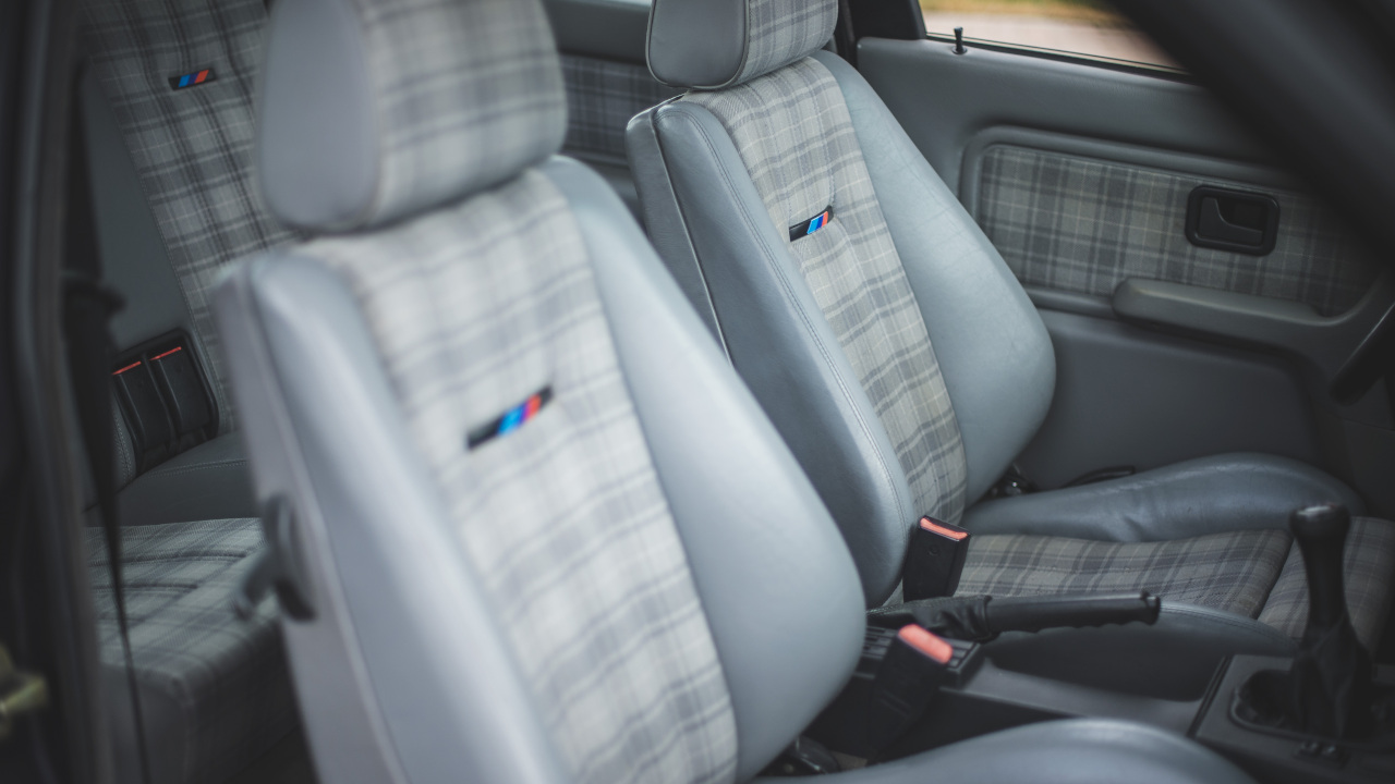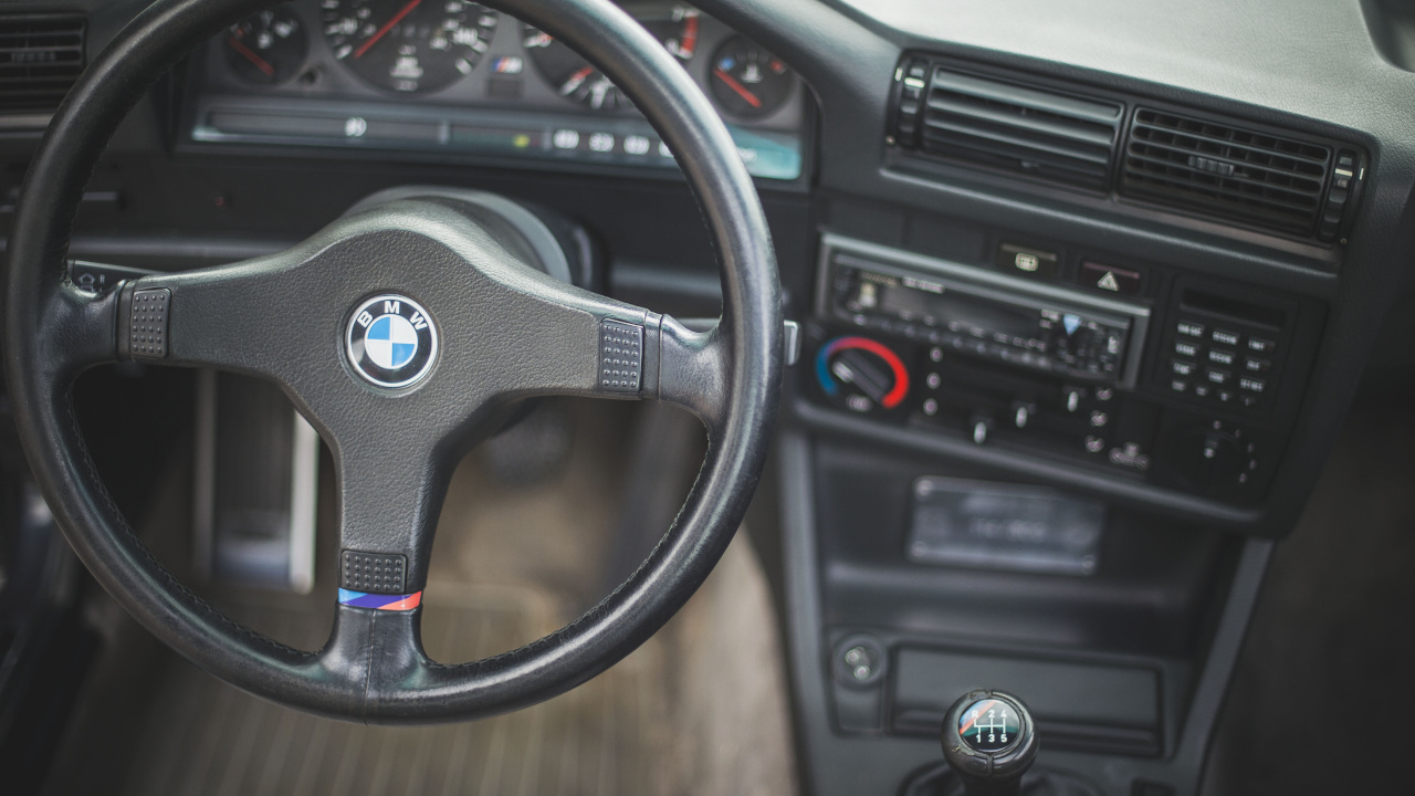 Στο εσωτερικό του που βρίσκεται σε εξαιρετική κατάσταση βλέπουμε και τα αυθεντικά ημιδερμάτινα bucket καθίσματα, μεταξύ άλλων στοιχείων που κάνουν τα σάλια εκατοντάδων φίλων της M3 να τρέχουν, όπως το τριάκτινο τιμόνι με τον ασορτί επιλογέα αλλά και την πλακέτα στην κεντρική κονσόλα που υποδηλώνει το περιορισμένο της παραγωγής.