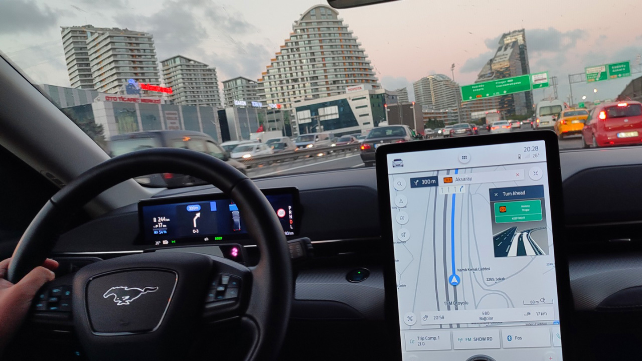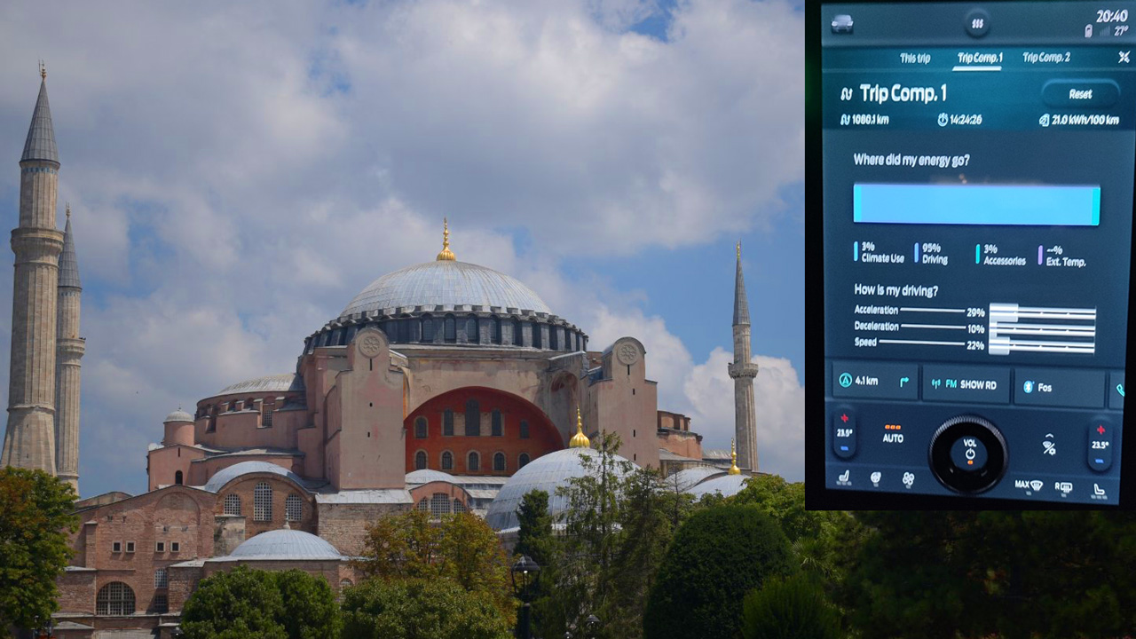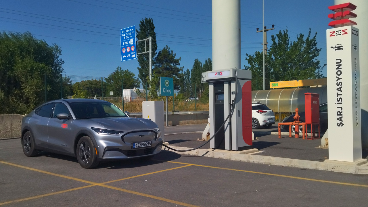 Ξεκούραστοι εμείς (όπως επιβάλλεται για ένα ταξίδι τόσων χιλιομέτρων), πλήρως φορτισμένο το Ford Mustang Mach-E και ξεκινάμε για την Κωνσταντινούπολη. Με την βοήθεια του Ford Pass είχαμε δει ότι μία στάση στον φορτιστή NRG στην Κομοτηνή ώστε να “φουλάρουμε” ήταν αρκετή ώστε ολοκληρωθεί το ταξίδι. Ωστόσο επιλέξαμε μία διαφορετική “οδό” ώστε να γίνει και μία αυτοψία στον ταχυφορτιστή της Τουρκίας στην πόλη Kesan (λίγο μετά τα σύνορα). Έτσι, θα κερδίζαμε και χρόνο, αφού όπως είπαμε με το να περιμέναμε στην Κομοτηνή την πλήρη φόρτιση θα χάναμε πολύτιμα λεπτά (μειώνεται η ταχύτητα μετά το 80-85%). Φτάσαμε στην Κομοτηνή διανύοντας σε 2 ώρες και 15 λεπτά μία απόσταση 245 χιλιομέτρων και στην οθόνη είδαμε 35%. Εδώ έγινε και η μεγαλύτερη στάση για φόρτιση συνολικά, μιας και χρειάστηκε μία ώρα για να φτάσουμε στο 85%. Περιμένοντας μέχρι το 100% θα φτάναμε οριακά στην Κωνσταντινούπολη, σε μία άγνωστη πόλη με χαοτική κίνηση (χώρια η μείωση της αυτονομίας λόγω της ενδεχομένως χρονοβόρας στάσης στα σύνορα). Οπότε φύγαμε με το “ρεζερβουάρ” στο 85% με προορισμό το Kesan, 126 χλμ. από την Κομοτηνή. Όλα πήγαν καλά στους συνοριακούς ελέγχους και φτάσαμε στον σταθμό φόρτισης της τουρκικής ZES με 54%. Έπειτα από μία “περιπέτεια” στην οποία θα αναφερθούμε αναλυτικά σε επόμενο κείμενο, ο ταχυφορτιστής ενεργοποιήθηκε, φορτίσαμε σε μόλις μερικά λεπτά στο 85% και αναχωρήσαμε με περίσσια άνεση για τον τελικό προορισμό. Το ταξίδι ολοκληρώθηκε φτάνοντας στο ξενοδοχείο στην περιοχή Eminonu (άλλα 230 χλμ.), κοντά στην Αγία Σοφία με την μπαταρία στο 30%. Το ταξίδι Αθήνα-Κωνσταντινούπολη ολοκληρώθηκε με την οθόνη να γράφει 1.080 χλμ. σε 14 ώρες και 24 λεπτά με μέση κατανάλωση 21 kWh/100 χλμ.