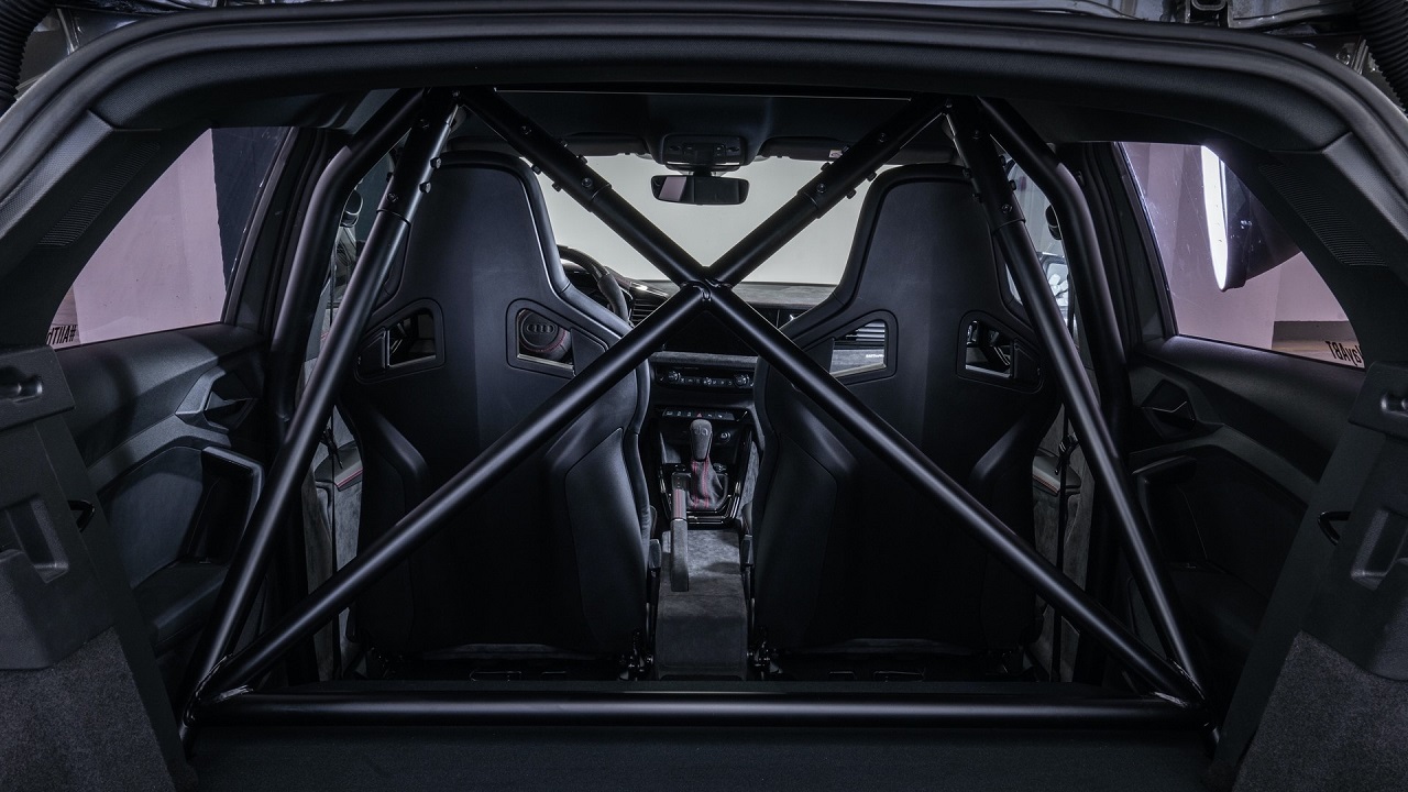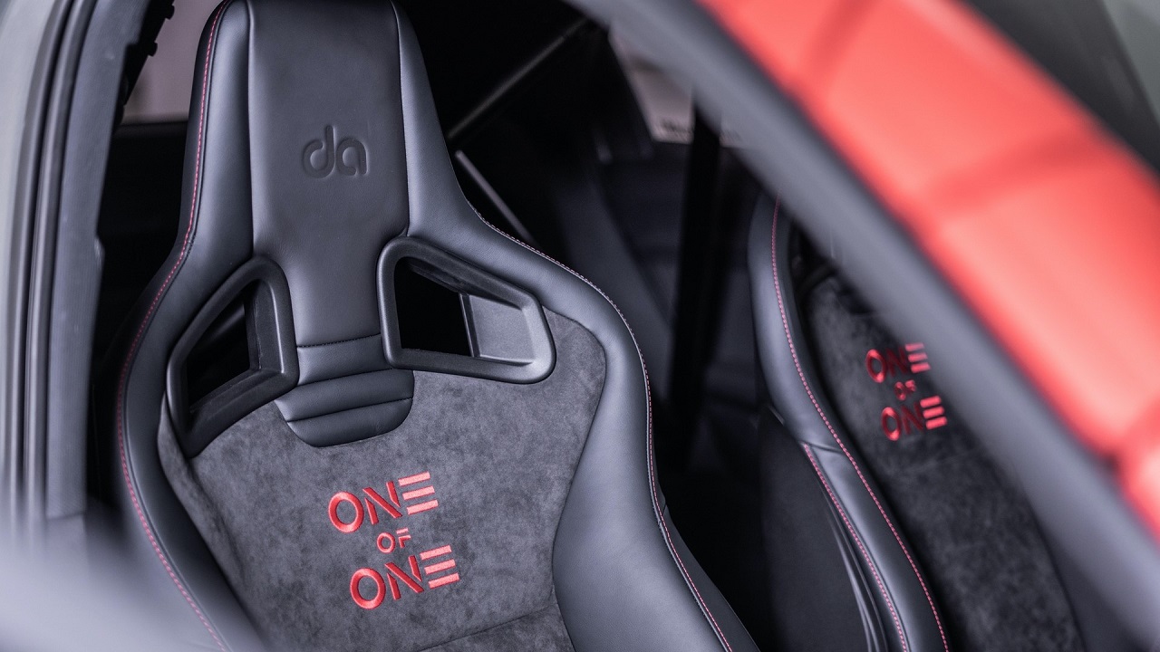 Η λέξη «σπαρτιάτικο» είναι η καταλληλότερη για να περιγράψει την κατάσταση που επικρατεί στο εσωτερικό. Τα πίσω καθίσματα κρίθηκαν περιττά λόγω βάρους. Οπότε καταργήθηκαν με συνοπτικές διαδικασίες και τη θέση τους πήρε το roll bar αγωνιστικών προδιαγραφών. Τα bucket καθίσματα εμπρός φέρουν το λογότυπο «One of One» και το μεγαλύτερο μέρος της καμπίνας καλύπτεται από δέρμα τύπου alcantara.