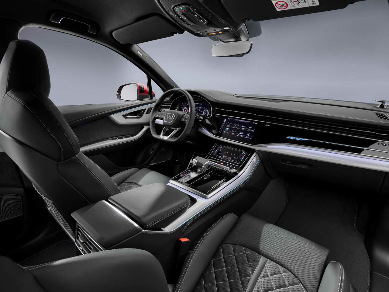 Όσο για την τεχνολογία του Audi Q7, δύο μεγάλες οθόνες αφής τονίζουν την ψηφιοποίηση στο εσωτερικό. Το γνωστό σύστημα MMI και η γκάμα εφαρμογών Audi Connect, προσφέρουν πολλές επιλογές. Μεταξύ αυτών, συγκαταλέγονται η δυνατότητα δημιουργίας Wi-Fi Hotspot, η online πληροφόρηση της κίνησης στους δρόμου και ή πλοήγηση μέσω του Google Earth. Μια ενδιαφέρουσα τεχνολογία αφορά στην υπηρεσία Car-to-X, δηλαδή την επικοινωνία μεταξύ αυτοκινήτων και υποδομών εντός πόλης. Για παράδειγμα, το αυτοκίνητο θα λαμβάνει πληροφόρηση από το κεντρικό σύστημα διαχείρισης φαναριών, με στόχο ο οδηγός να συγχρονίσει την ταχύτητά του με τέτοιο τρόπο, ώστε όταν φτάσει στο σημείο το φανάρι να είναι πράσινο. Στόχος του εν λόγω συστήματος, που θα λειτουργεί πιλοτικά σε επιλεγμένες ευρωπαϊκές χώρες, είναι η δημιουργία ροής κατά την κίνηση σε πόλεις, μειώνοντας τις πιθανότητες μποτιλιαρίσματος.