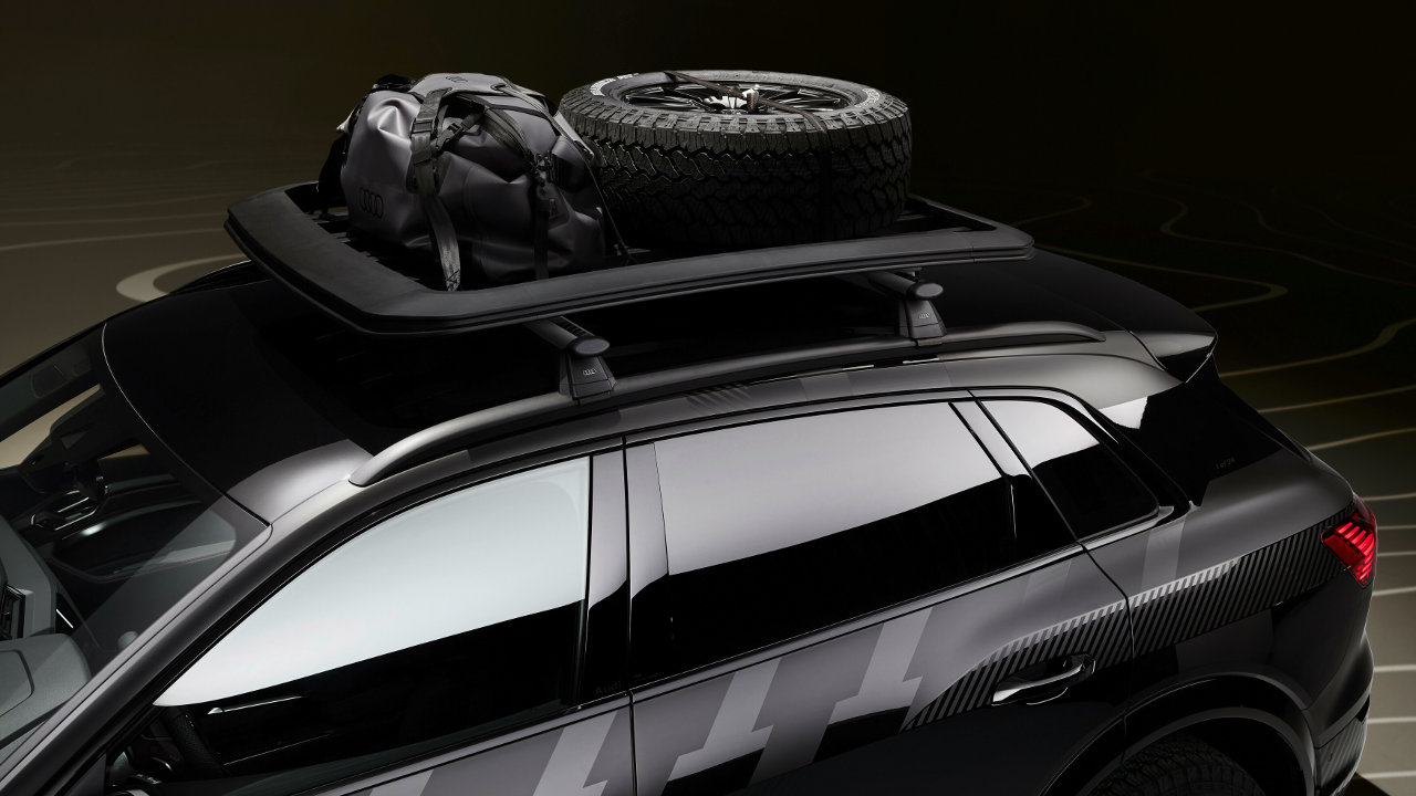 Εκτός από τους τροχούς και το μεγαλύτερο ύψος από το έδαφος, εξωτερικά η έκδοση Dakar ξεχωρίζει από τα μεγαλύτερα σε πλάτος προστατευτικά στους θόλους των τροχών, αλλά και από τα αυτοκόλλητα γραφικά που μοιάζουν με εκείνα του αγωνιστικού RS Q e-tron που συμμετέχει στον θρυλικό αγώνα.