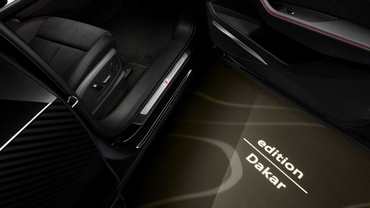 Πλούσιος είναι και ο στάνταρ εξοπλισμός άνεσης του Q8 e-tron edition Dakar με φιμέ κρύσταλλα για τα πίσω παράθυρα και την πέμπτη πόρτα και το πακέτο S line για την καμπίνα που περιλαμβάνει μεταξύ άλλων διακοσμητικά στοιχεία από βουρτσισμένο αλουμίνιο, επενδύσεις από τεχνητό δέρμα με κόκκινες ραφές, πεντάλ από ανοξείδωτο ατσάλι και κλιματισμό τεσσάρων ζωνών.