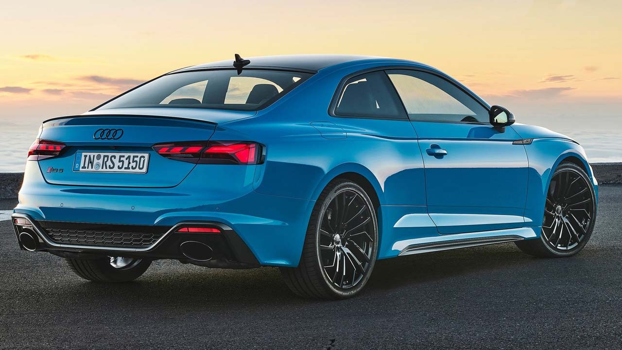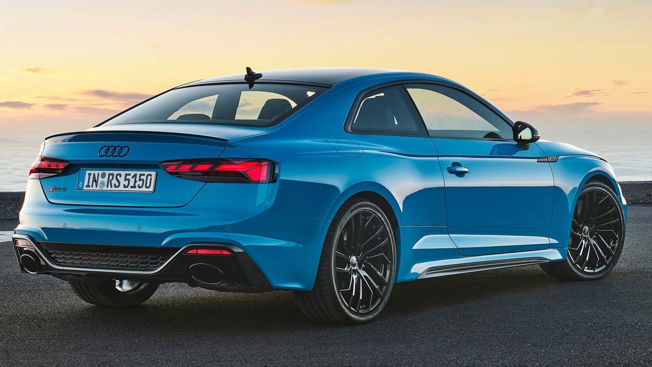 Οι οπές αερισμού πάνω από τη μάσκα θυμίζουν το κλασικό Audi Sport quattro του 1984, ενώ οι θόλοι των τροχών είναι 40 χιλιοστά πλατύτεροι. Οι προαιρετικοί προβολείς LED matrix με το φως Audi laser διαθέτουν σκούρα περιγράμματα, που δίνουν μία ξεκάθαρα διαφορετική οπτική εντύπωση των δύο μοντέλων RS, σε σχέση με το βασικό μοντέλο A5. Τα διακοσμητικά πακέτα γυαλιστερού μαύρου, ματ αλουμινίου ή ανθρακί χρώματος προσδίδουν τόσο εμπρός και πίσω όσο και στο πλάι μία ακόμα πιο ξεχωριστή όψη. Το Audi RS 5 Coupe είναι εφοδιασμένο με οροφή ανθρακονημάτων, η οποία μειώνει το βάρος του οχήματος κατά περίπου τέσσερα κιλά.