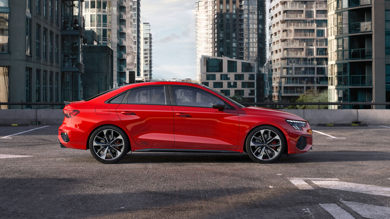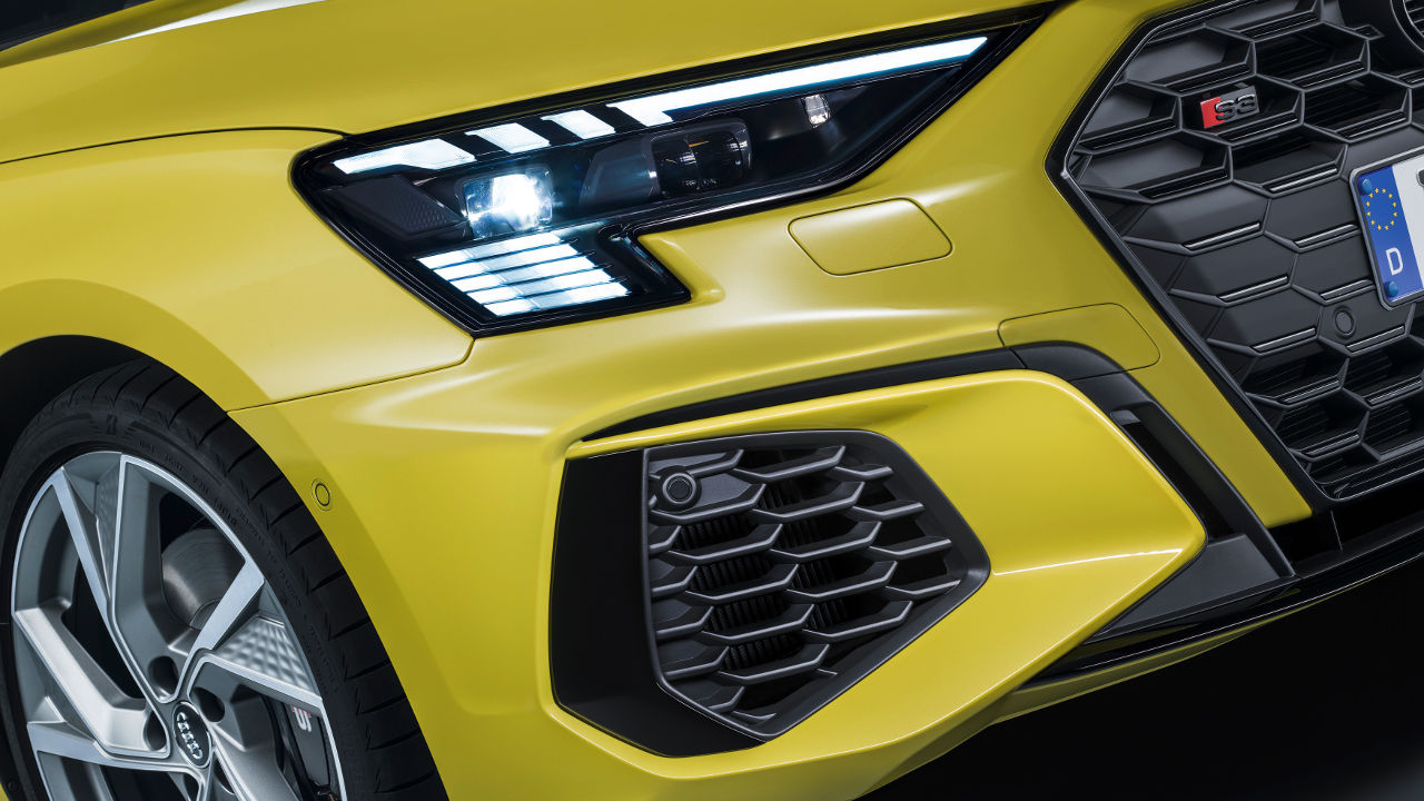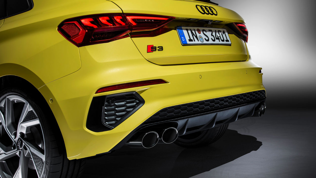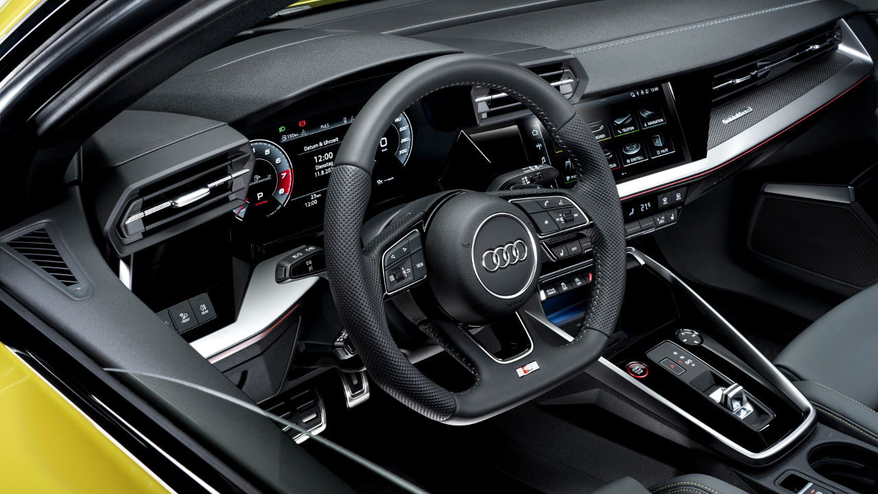 Τόσο ως Sportback όσο και σαν sedan το νέο Audi S3 ξεχωρίζει για την επιθετική σχεδίαση του αμαξώματος του που χαρακτηρίζεται από έντονες καμπύλες αλλά και ακμές. Η μαύρη κυψελωτή γρίλια κυριαρχεί στο εμπρός μέρος, όπως και οι μεγάλοι αεραγωγοί του προφυλακτήρα με το εμπρός μέρος να γίνεται ακόμη πιο εντυπωσιακό με την προσθήκη των έξτρα matrix LED φωτιστικών σωμάτων. Αντίστοιχα σπορτίφ είναι και η εικόνα στο προσεγμένο σκουρόχρωμο εσωτερικό. Ο πίνακας πληροφοριών του οδηγού έχει διαγώνιο 10,25 ίντσες με εκείνη για την οθόνη αφής να φτάνει στις 10,1 ίντσες. Διαθέσιμη είναι αναβάθμιση και για τα δύο στις 12,3 ίντσες.