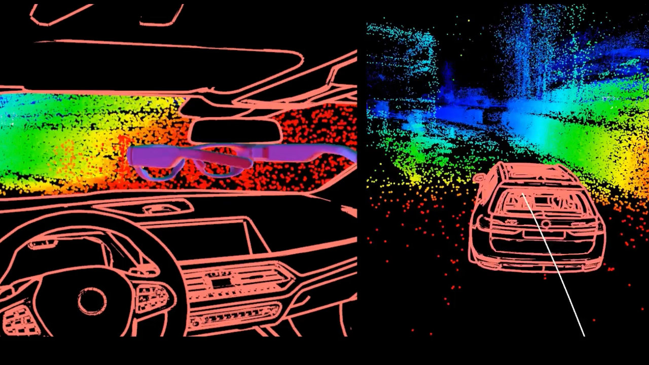 Το παραπάνω έδωσε τη δυνατότητα στο σύστημα εντοπισμού να υπολογίζει ταυτόχρονα τη θέση της συσκευής σε σχέση με το αυτοκίνητο και τη θέση του κινούμενου αυτοκινήτου σε σχέση με τον πραγματικό κόσμο, επιτρέποντας την ακριβή παρουσίαση εικονικών αντικειμένων σε ένα κινούμενο αυτοκίνητο και την επίδειξη συναρπαστικών εμπειριών VR και MR για τους επιβάτες.