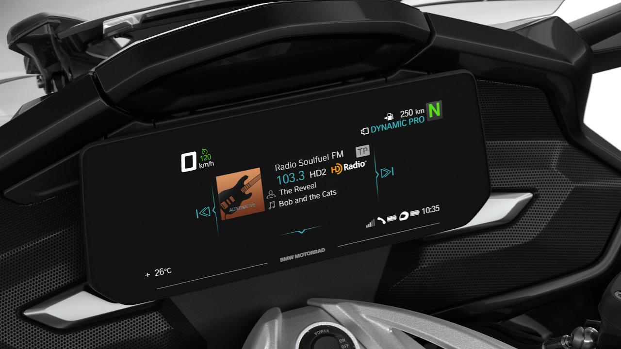 Παράλληλα, οι νέες K 1600 GT, GTL, B και Grand America εφοδιάζονται τώρα στάνταρ με μία νέα, έγχρωμη οθόνη TFT 10,25 ιντσών με ενσωματωμένο χάρτη πλοήγησης και συνδεσιμότητα. Με μία εξαιρετική αναγνωσιμότητα, σαφήνεια μενού και μία ολοκληρωμένη λειτουργική φιλοσοφία, κατατάσσονται στην κορυφή της κατηγορίας τους. Η νέα, έγχρωμη οθόνη 10,25” επιτρέπει την απεικόνιση του χάρτη πλοήγησης στο ταμπλό οργάνων που σημαίνει ότι δεν χρειάζεται πρόσθετη οθόνη. Παράλληλα ως στάνταρ ή προαιρετικός εξοπλισμός, ανάλογα με το μοντέλο, είναι και το νέο σύστημα ήχου audio system 2.0, που προσφέρει μία ακόμα πιο συναρπαστική εμπειρία, σύμφωνα με τη BMW. Το audio system διατίθεται ως προαιρετικός εξοπλισμός από το εργοστάσιο για τις K 1600 GT και K 1600 B.