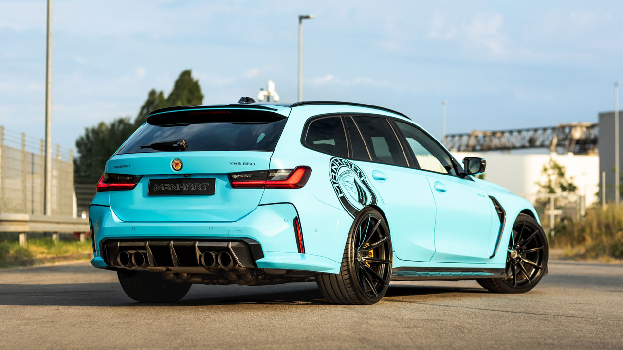 Όπως μπορείτε να δείτε, η εμφάνιση είναι ιδιαίτερα τολμηρή, με την BMW M3 Touring να αποκτά ένα αρκετά ιδιαίτερο χρώμα. Η MANHART MH3 650 Touring, όπως την ονομάζει ο οίκος, “πατάει” επάνω σε τροχούς της Yido Performance με διαστάσεις 10,5×20 ίντσες και 11,5×21. Αντιστοίχως, τα ελαστικά έχουν μέγεθος 285/30 ZR20 και 305/25ZR21.