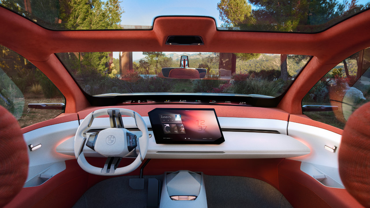 Το Panoramic Vision προβάλλει βασικές πληροφορίες σε όλο το πλάτος του παρμπρίζ και στα μοντέλα παραγωγής της Neue Klasse θα συμπληρώνεται από το βελτιωμένο τρισδιάστατο Head-Up Display της BMW. Παράλληλα, τα χρώματα που εμφανίζονται στην οθόνη δεν μεταφέρονται μόνο στον κρυφό, ατμοσφαιρικό φωτισμό, αλλά και στις υφασμάτινες επιφάνειες του πίνακα οργάνων μέσω οπίσθιου φωτισμού.