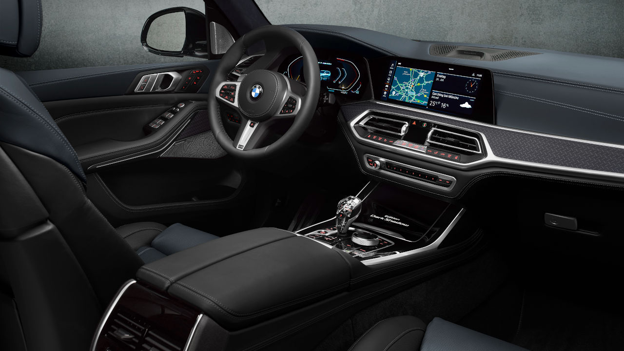 Η X7 Dark Shadow φέρει το αεροδυναμικό πακέτο M σπορ ως στάνταρ και τις ζάντες αλουμινίου “M” με διάμετρο στις 22 ίντσες σε μαύρο ματ, ενώ στον στάνταρ εξοπλισμό ανήκει και το “M” σύστημα εξαγωγής.
