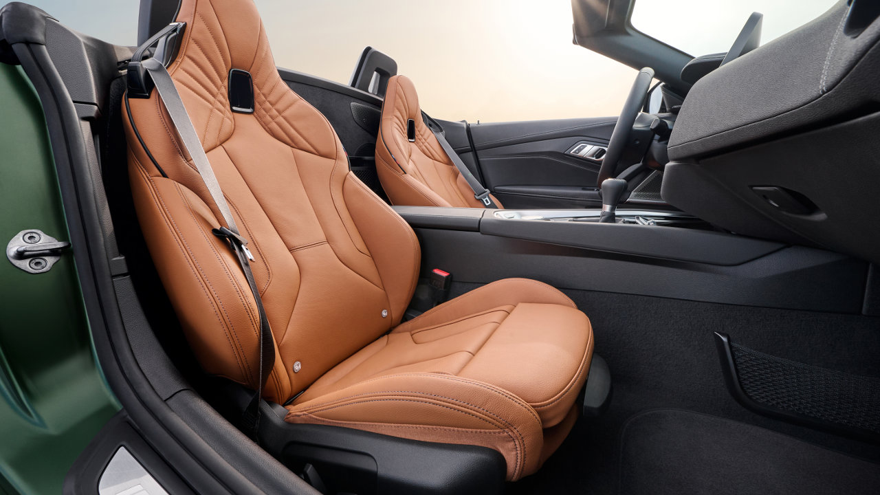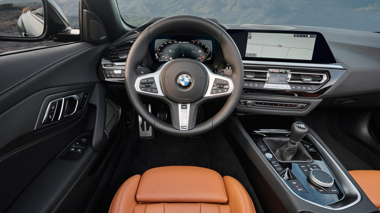 Οι αλλαγές συνεχίζονται στην καμπίνα με μοχλό αλλαγής ταχυτήτων Μ και ένα ειδικό για το μοντέλο κάλυμμα κεντρικής κονσόλας, που χρησιμοποιείται για τον έλεγχο του εξατάχυτου χειροκίνητου κιβωτίου της ειδικής έκδοσης. Η δερμάτινη επένδυση Vernasca σε χρωματισμό Cognac με μαύρες ραφές M είναι επίσης αποκλειστική για την BMW Z4 M40i Pure Impulse και συμπληρώνεται από διακοσμητικές λωρίδες σε μαύρο γυαλιστερό χρώμα.