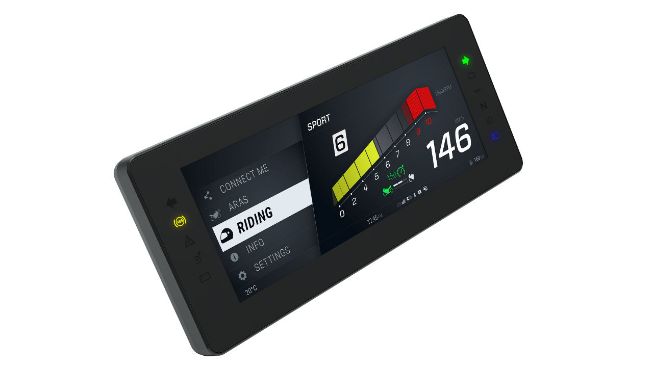 Χάρη στο λογισμικό που φέρει αλλά και τις μεγάλες διαστάσεις της η νέα οθόνη μπορεί και προβάλλει ταυτόχρονα έναν μεγάλο όγκο πληροφοριών στα μάτια του αναβάτη, σχετικό τόσο με την κατάσταση της λειτουργίας της μοτοσυκλέτας όσο και με τις εφαρμογές που προβάλλονται από το κινητό του, όπως για παράδειγμα μπορεί να είναι η πλοήγηση. Ο αναβάτης δεν χρειάζεται να κάνει κάποια επέμβαση μέσω των χειριστηρίων για να αλλάξει την προβολή ή μενού.