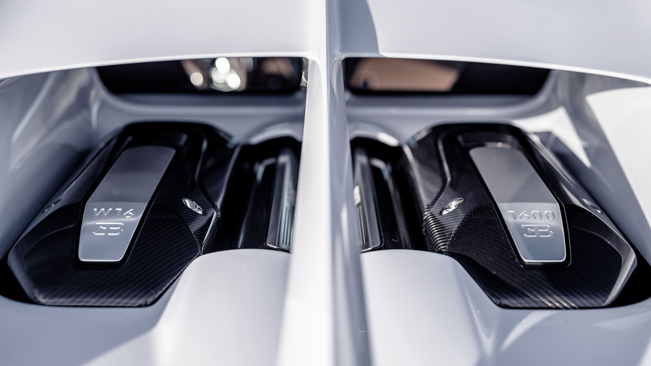 Ο μεγάλος 16κύλινδρος W κινητήρας των οχτώ λίτρων και τεσσάρων turbo (στα 2,8 bar η πίεση) δέχτηκε πολλές αλλαγές από τους μηχανικούς της γαλλικής εταιρίας, με στόχο να αυξήσει ακόμη περισσότερο την απόδοση του, χωρίς αυτό να γίνει σε βάρος της αξιοπιστίας. Το μοτέρ αποδίδει τώρα 100 ίππους περισσότερους και φτάνει στους 1.600 έχοντας δεχτεί αλλαγές στους υπερσυμπιεστές, στο κύκλωμα λίπανσης αλλά και στις κεφαλές του. Παράλληλα αυξήθηκε και το όριο περιστροφής του κατά 300 σ.α.λ. φτάνοντας τώρα στις 7.300 σ.α.λ. Τα 1.600 Nm ροπής που παράγει είναι τώρα διαθέσιμα έως και τις 7.000 σ.α.λ. (από τις μόλις 2.000 στροφές), ενώ στη Chiron το φάσμα “περιορίζεται” έως τις 6.000 στροφές.