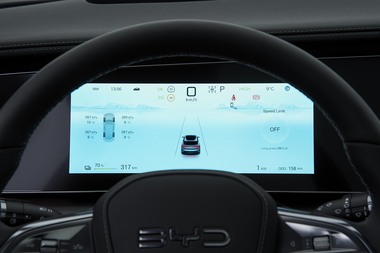 Το Sealion 7 διαθέτει στο κέντρο του ταμπλό οθόνη 15,6 ιντσών, η οποία περιστρέφεται κατακόρυφα ή οριζόντια, αξιοποιώντας το πιο πρόσφατο λογισμικό της BYD με βελτιωμένη, φιλική διεπαφή. Παράλληλα, ο ψηφιακός πίνακας οργάνων 10,25 ιντσών και το Head-Up Display (HUD) της έκδοσης Excellence AWD προβάλλουν πλοήγηση, μουσικές πληροφορίες, ταχύτητα, όρια ταχύτητας και δεδομένα συστημάτων υποβοήθησης του οδηγού.