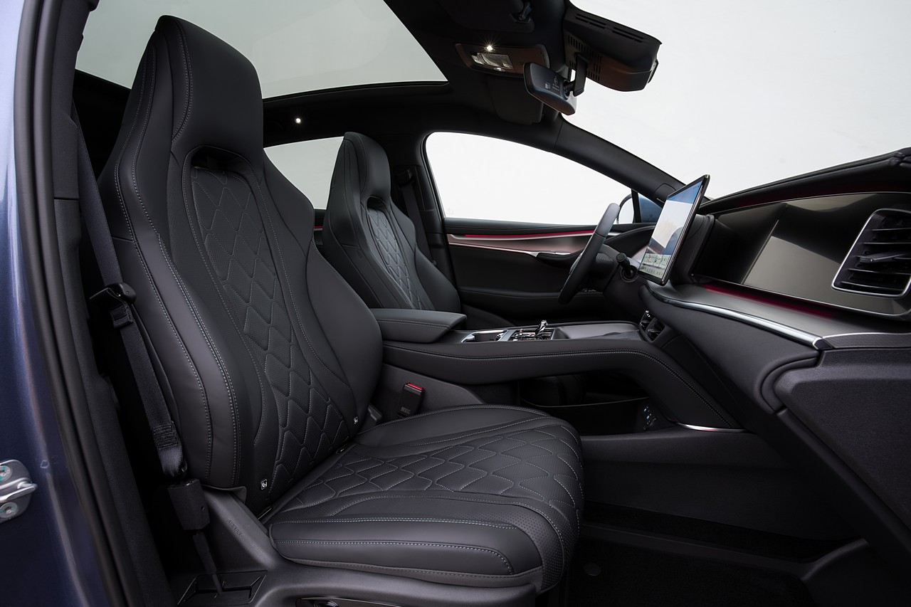 Στο εσωτερικό το Sealion 7 προσφέρει μεγάλη ευρυχωρία και πρακτικότητα για πέντε επιβάτες χάρη στο μήκος των 4.830 χλστ. και το μεταξόνιο των 2.930 χλστ, σε συνδυασμό με το εντελώς επίπεδο δάπεδο στο πίσω μέρος. Το τιμόνι ρυθμίζεται σε τέσσερις κατευθύνσεις, ενώ το κάθισμα του οδηγού διαθέτει ηλεκτρική ρύθμιση οκτώ κατευθύνσεων, καθώς και ηλεκτρικά ρυθμιζόμενη οσφυϊκή στήριξη τεσσάρων κατευθύνσεων. Επιπλέον, τα εμπρός καθίσματα περιλαμβάνουν σύστημα θέρμανσης και αερισμού στο βασικό εξοπλισμό.
