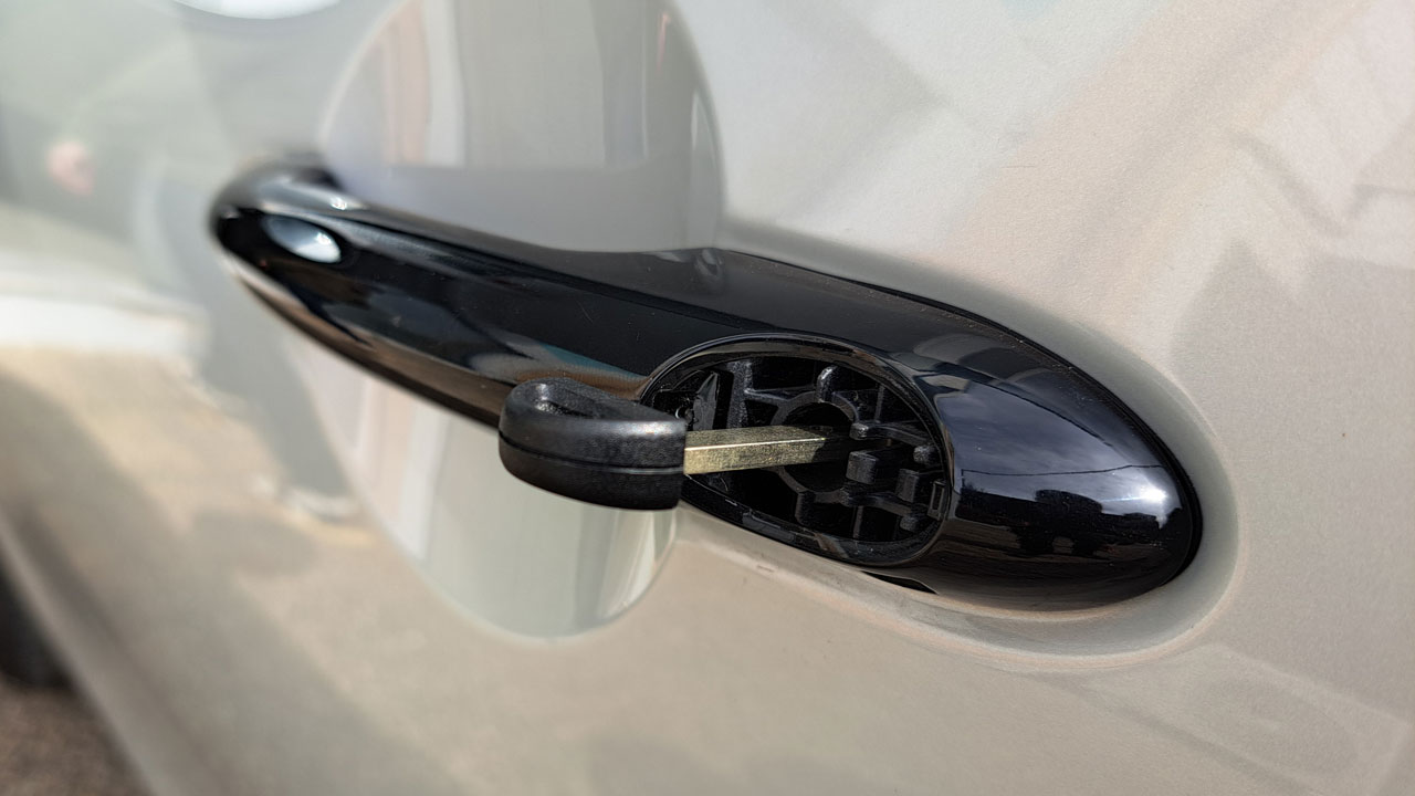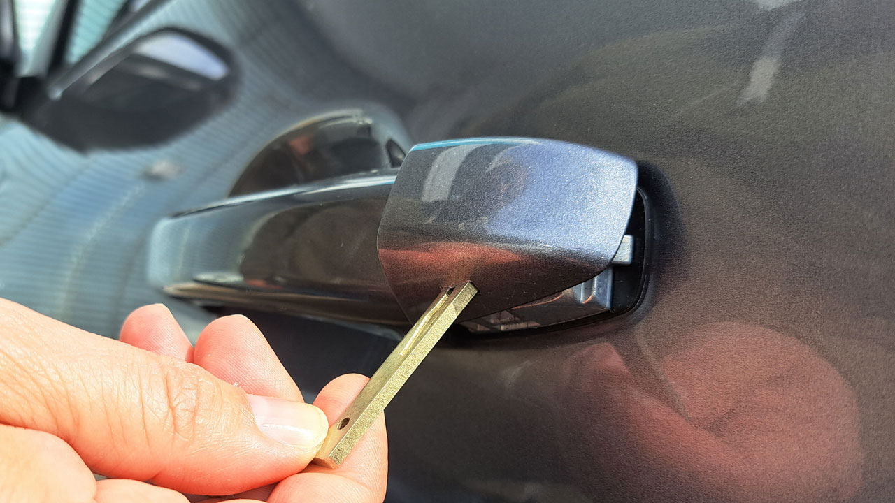 Βρίσκεται συνήθως μόνο στην χειρολαβή της πόρτας του οδηγού και, κοιτώντας από κάτω, θα δούμε πως υπάρχει μία μικρή τρύπα στην οποία χωράει το “φυσικό” κλειδί του οχήματος (όλα τα αυτοκίνητα έχουν τουλάχιστον ένα τέτοιο). Το τοποθετούμε εκεί με προσοχή και απελευθερώνουμε το κάλυμμα της κλειδαριάς. Αυτό ήταν, τώρα μπορούμε να ξεκλειδώσουμε το αυτοκίνητο με τον παλιό, παραδοσιακό τρόπο.
